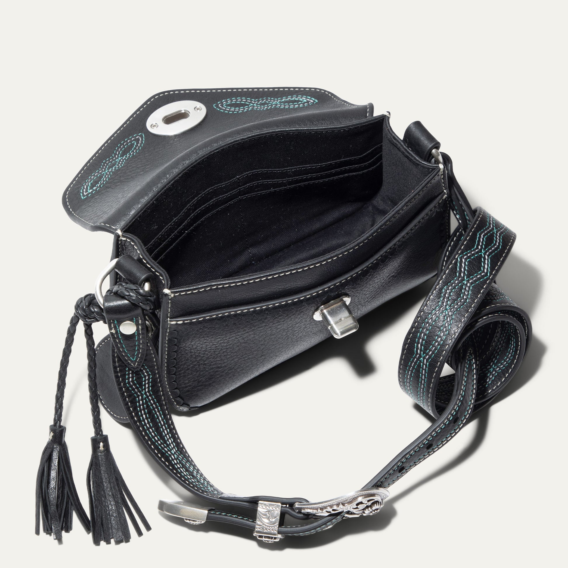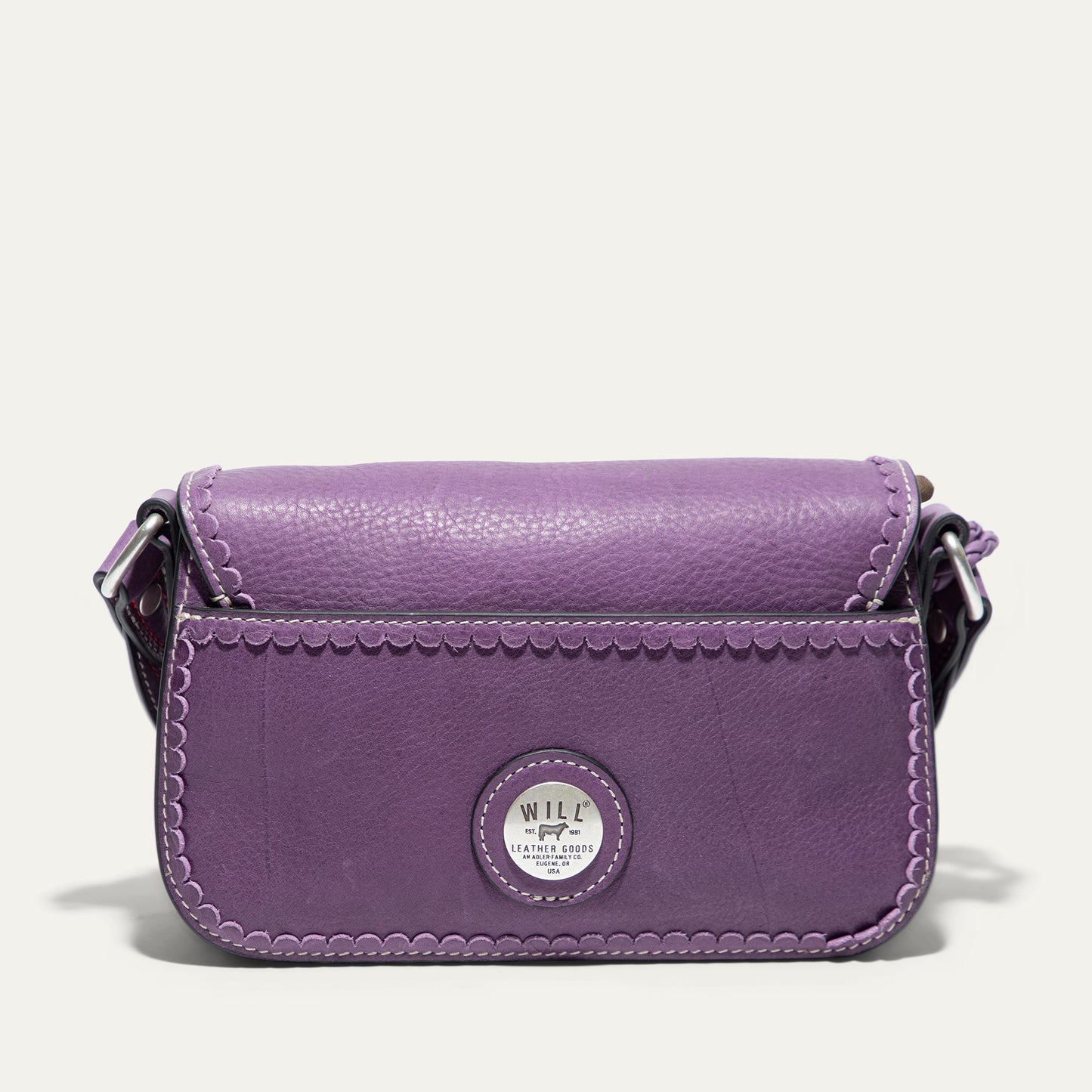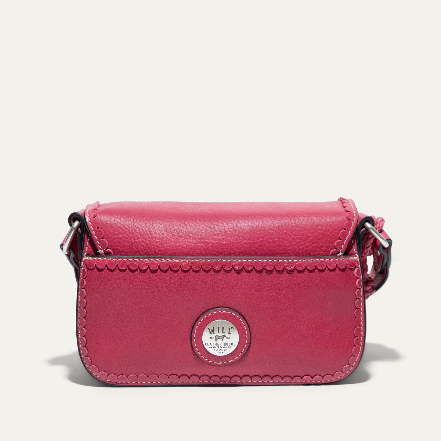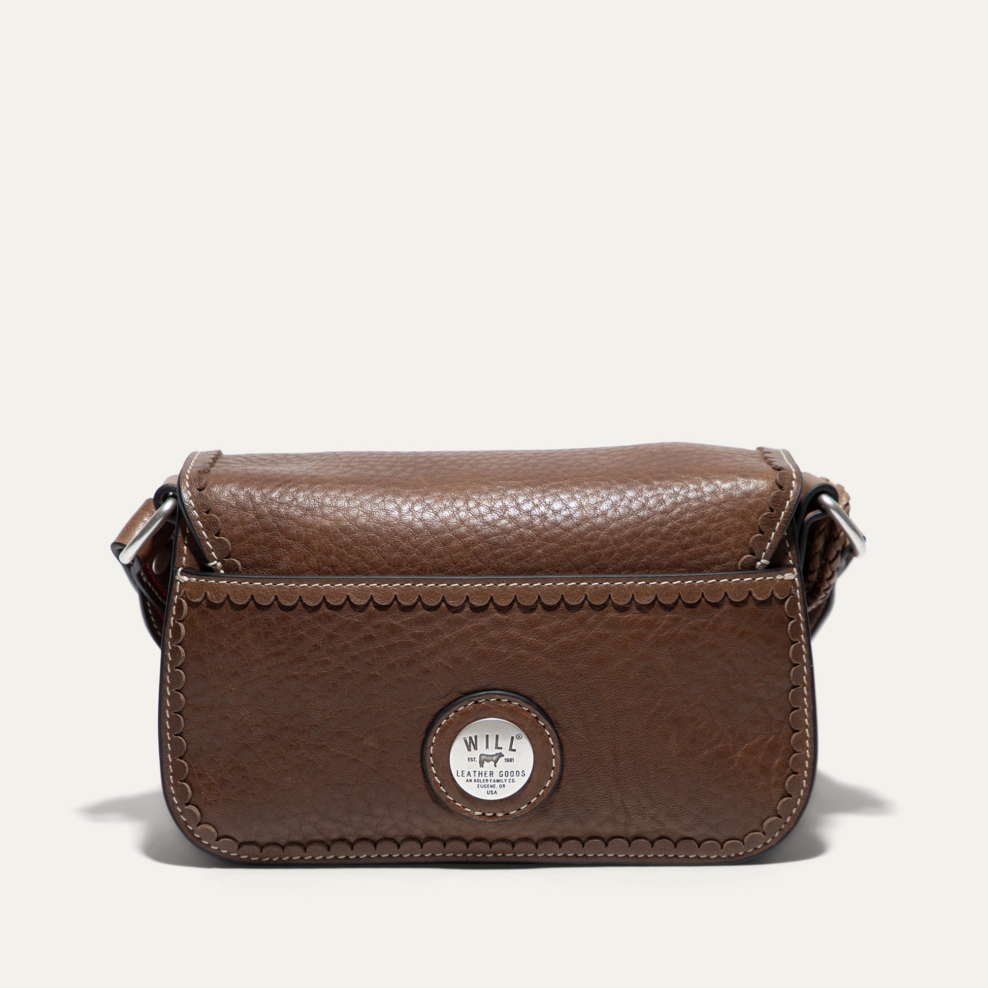 The Abilene Mini Crossbody is handcrafted from full-grain, vegetable-tanned leather. Adorned with colorful cowboy boot stitching, the flap features an antique sterling silver finish concho-inspired turn-lock for secure closure. An adjustable boot-stitched leather strap adjusts with a western three-piece buckle set to fit comfortably on the shoulder or across the body. Scalloped leather trim adds an artisanal touch. A hand-braided leather strap with tassels and our leather-framed WILL medallion adds a decorative detail. Under the flap, the exterior has a slip pocket for easy and fast access to your essentials. The lined interior contains six credit card slots. Our artisans use industrial-grade, heavy-gauge nylon thread and steel rivets to ensure durability. We stand behind our product—guaranteed for life.