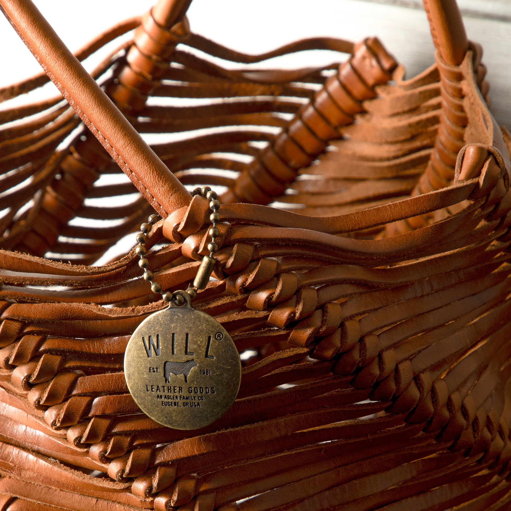 The bags are hand-crafted from vegetable-tanned leather, the same material used for our enduring belts that last for a lifetime. The leather lace is cut to 1.8mm, and it's dipped into an oil that softens it, allowing it to be woven by hand through different perforations on the base of the bag.