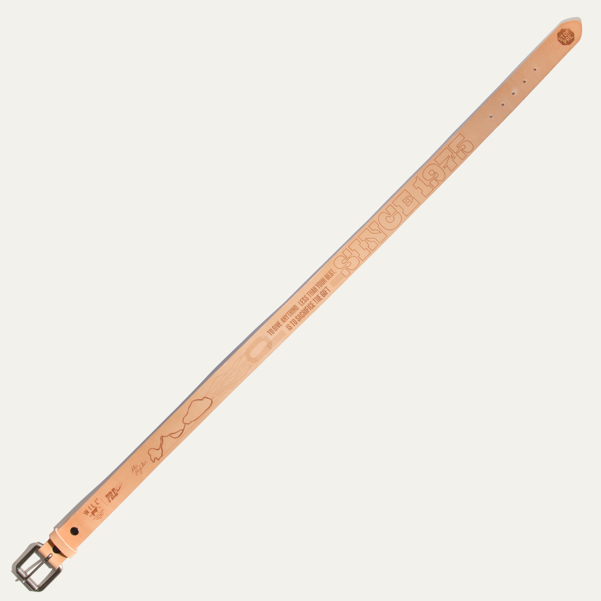 "To give anything less than your best is to sacrifice the gift" a quote combined with imagery that together tells a story that has stood the test of time—just like the material it lives on— natural veg tan leather handcrafted into a belt that will age and elevate the story for years to come.