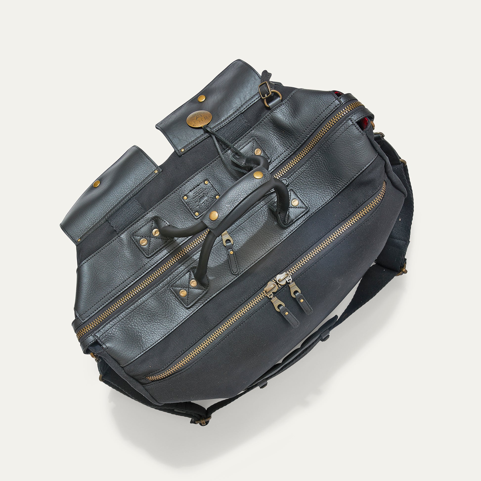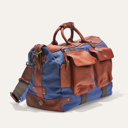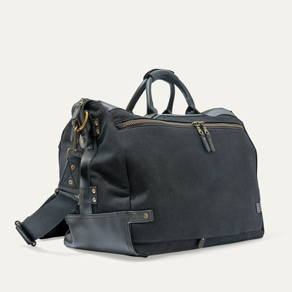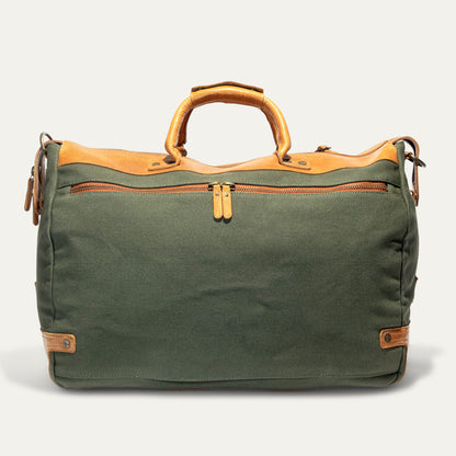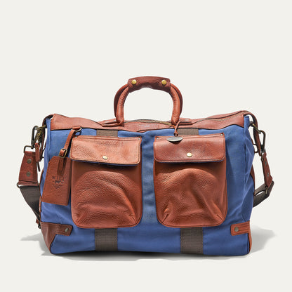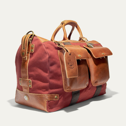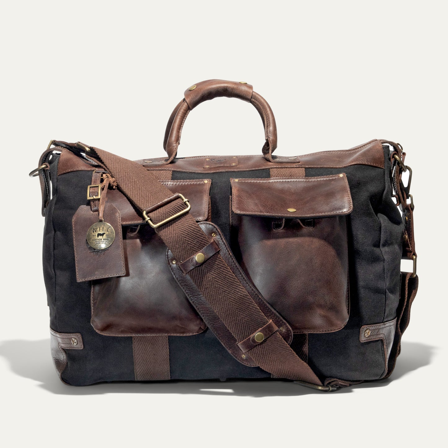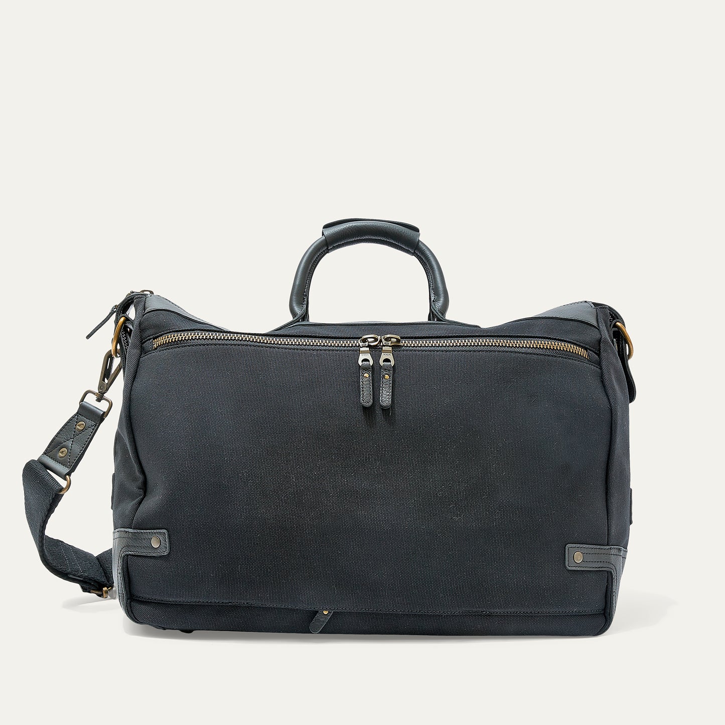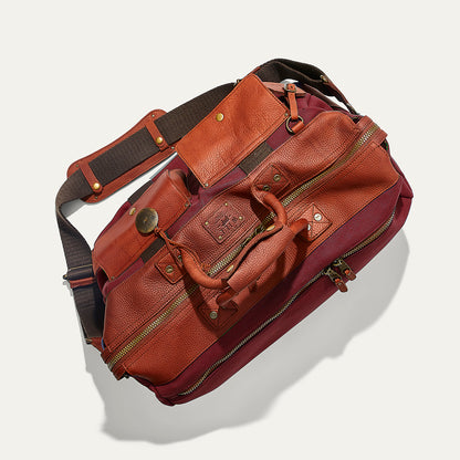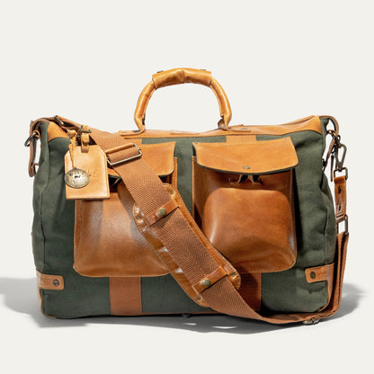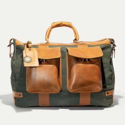 Designed and built for a lifetime of journeys, our Signature Canvas and Leather Travel Duffle combines 18-ounce industrial-grade 100% cotton canvas with our proprietary full-grain, vegetable-tanned leather. Our skilled artisans take 139 steps from the first cut of the leather to the final hand-hammered rivet to ensure our Travel Duffle lasts a lifetime—we guarantee it. Double-reinforced box stitching, dual hand-hammered steel rivets, and a leather top-handle wrap allow you to tote your duffle by hand. Our detachable and adjustable industrial-grade cotton webbing strap with removable memory foam pad can be slung on the shoulder or across your torso. A convenient hidden trolley sleeve allows you to securely place your travel duffle on top of a rolling suitcase. Two exterior flap pockets close with steel snaps and finger bridges for easy access, while a large back zipper pocket will hold your belongings as you head through airport security. Lined in our signature plaid, the interior features extensive organization—including a roomy zipper pocket, three slip pockets, a business card slot, an antique brass key clip, and a removable padded laptop sleeve. We stand behind our product—guaranteed for life.