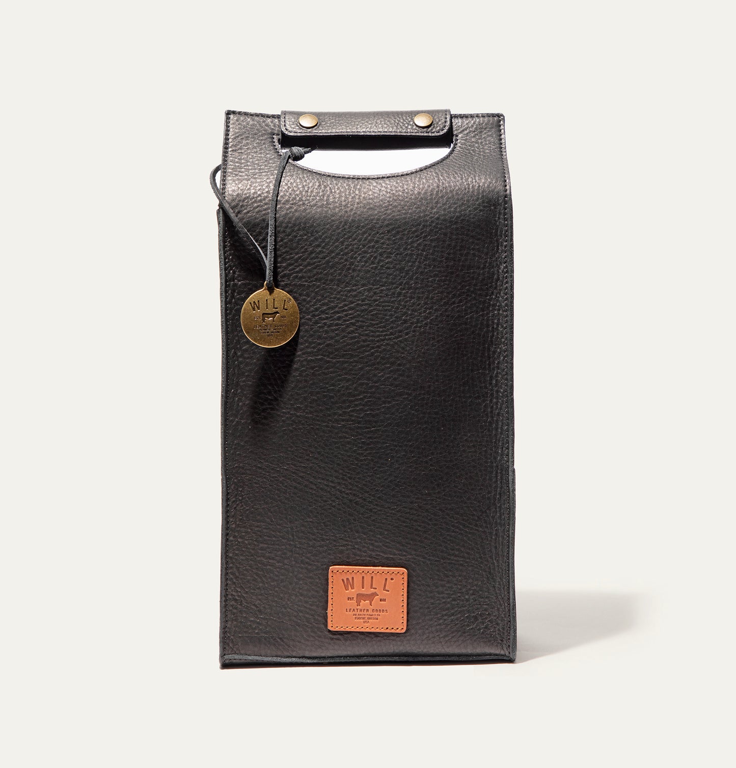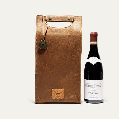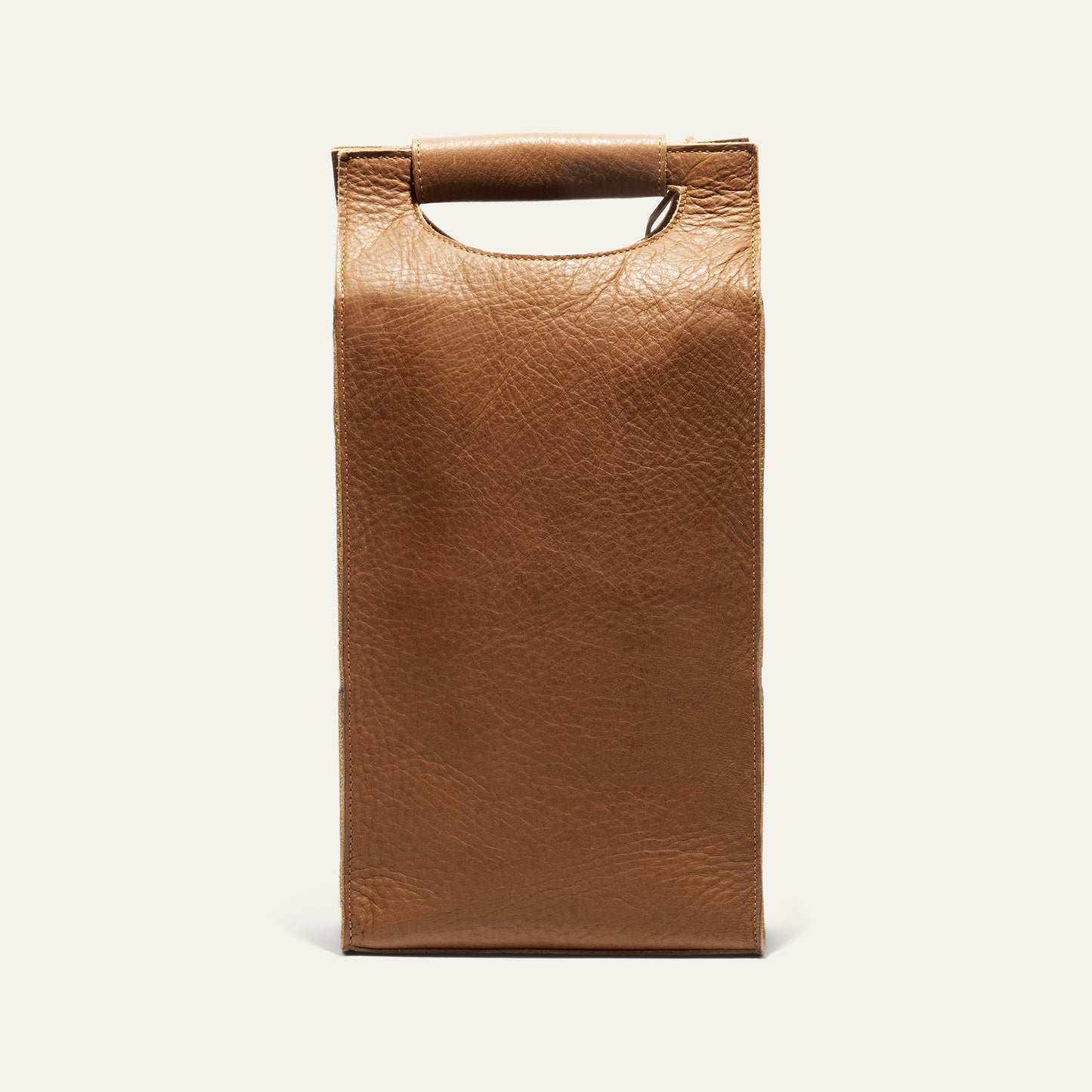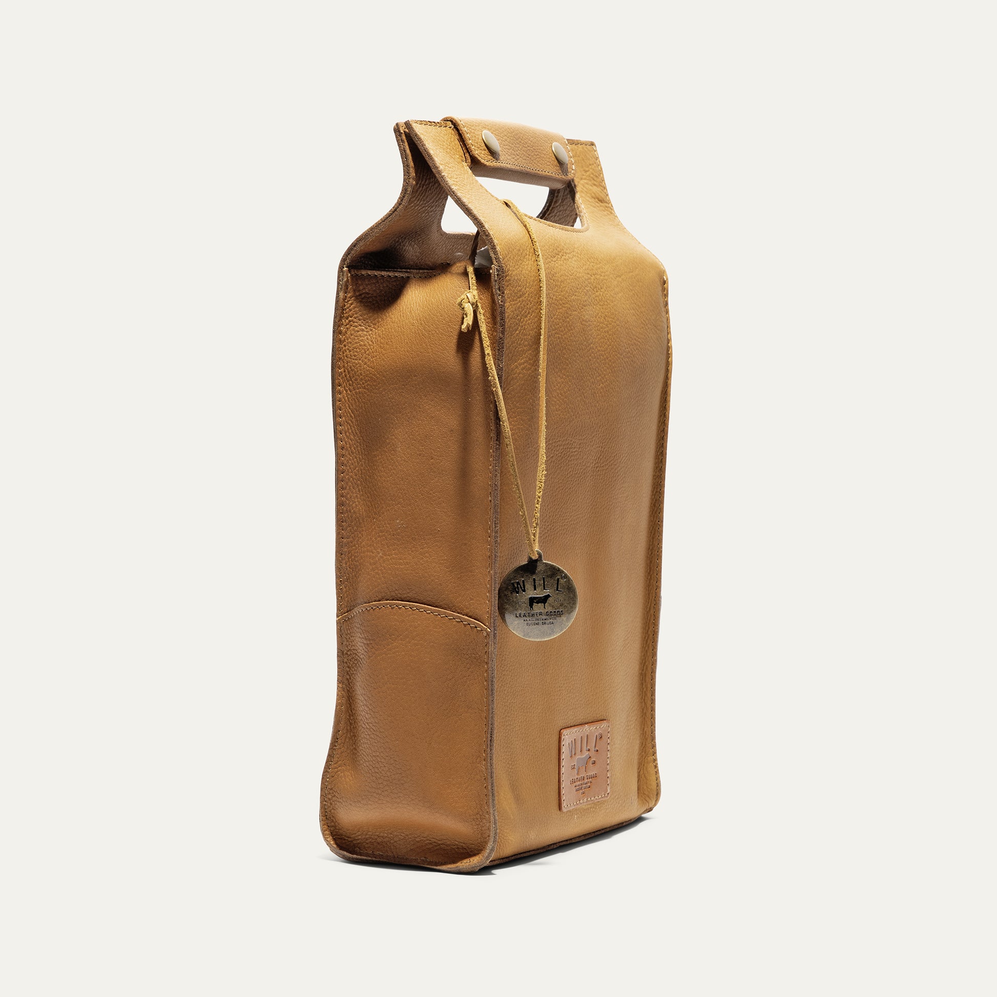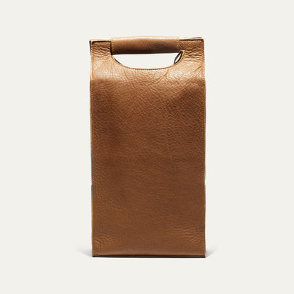 Our Double Bottle Leather Wine Case is handcrafted from full-grain, vegetable-tanned leather. Designed to fit a 750ml bottle of wine, the case features a cut-out top handle with a leather wrap and steel snap for secure closure. The interior is fully padded and lined with water-resistant nylon and features a hidden pocket for a folding corkscrew and a central divider. The Double Bottle Leather Wine Case is stitched with industrial-grade, heavy-gauge nylon thread to ensure durability. We stand behind our product—guaranteed for life.