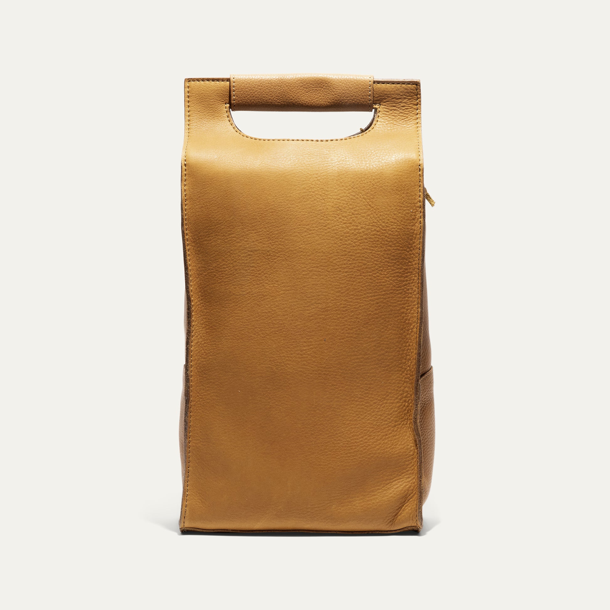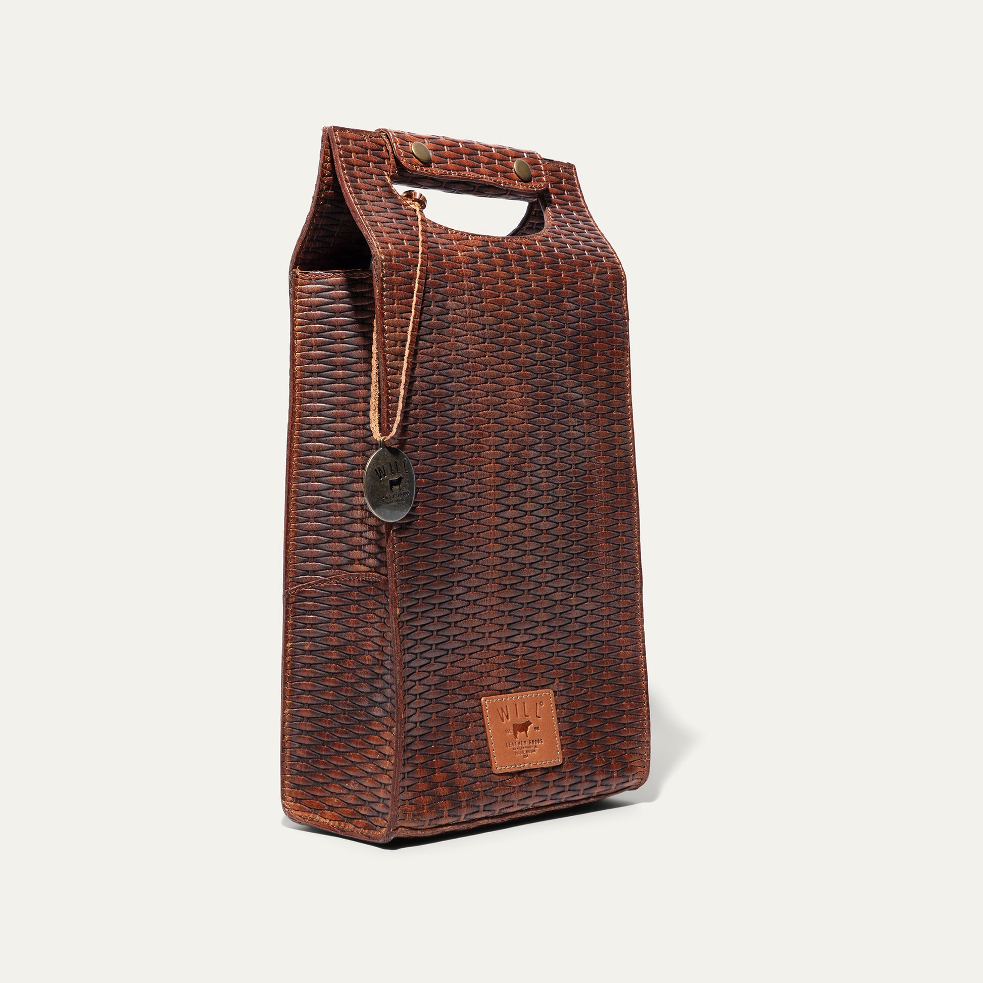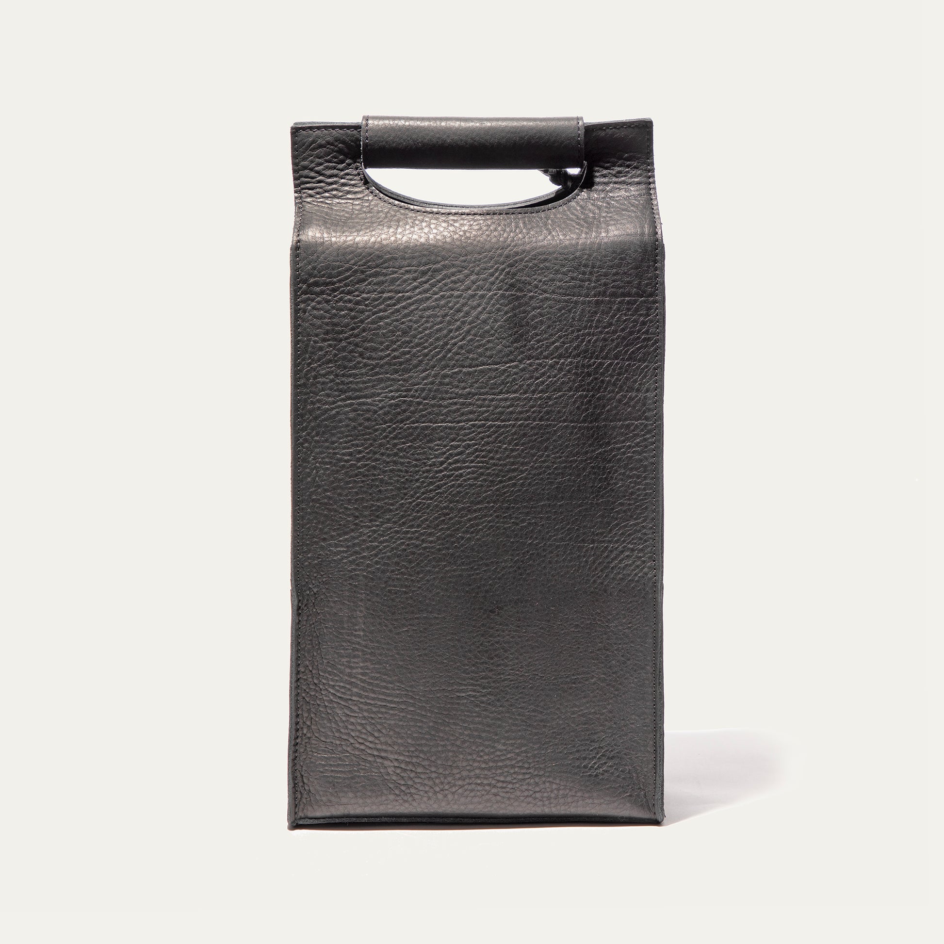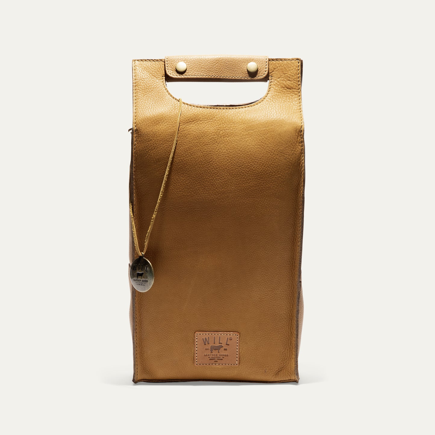 Our Double Bottle Leather Wine Case is handcrafted from full-grain, vegetable-tanned leather. Designed to fit a 750ml bottle of wine, the case features a cut-out top handle with a leather wrap and steel snap for secure closure. The interior is fully padded and lined with water-resistant nylon and features a hidden pocket for a folding corkscrew and a central divider. The Double Bottle Leather Wine Case is stitched with industrial-grade, heavy-gauge nylon thread to ensure durability. We stand behind our product—guaranteed for life.