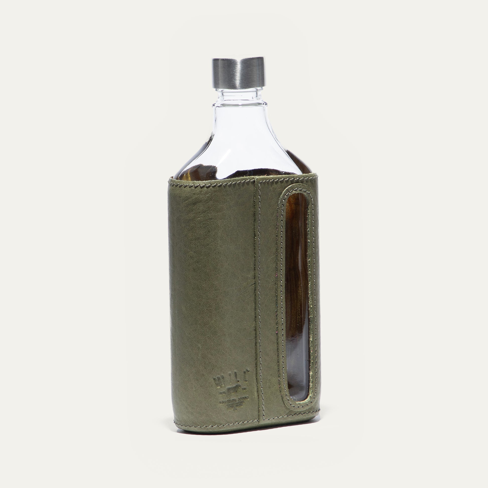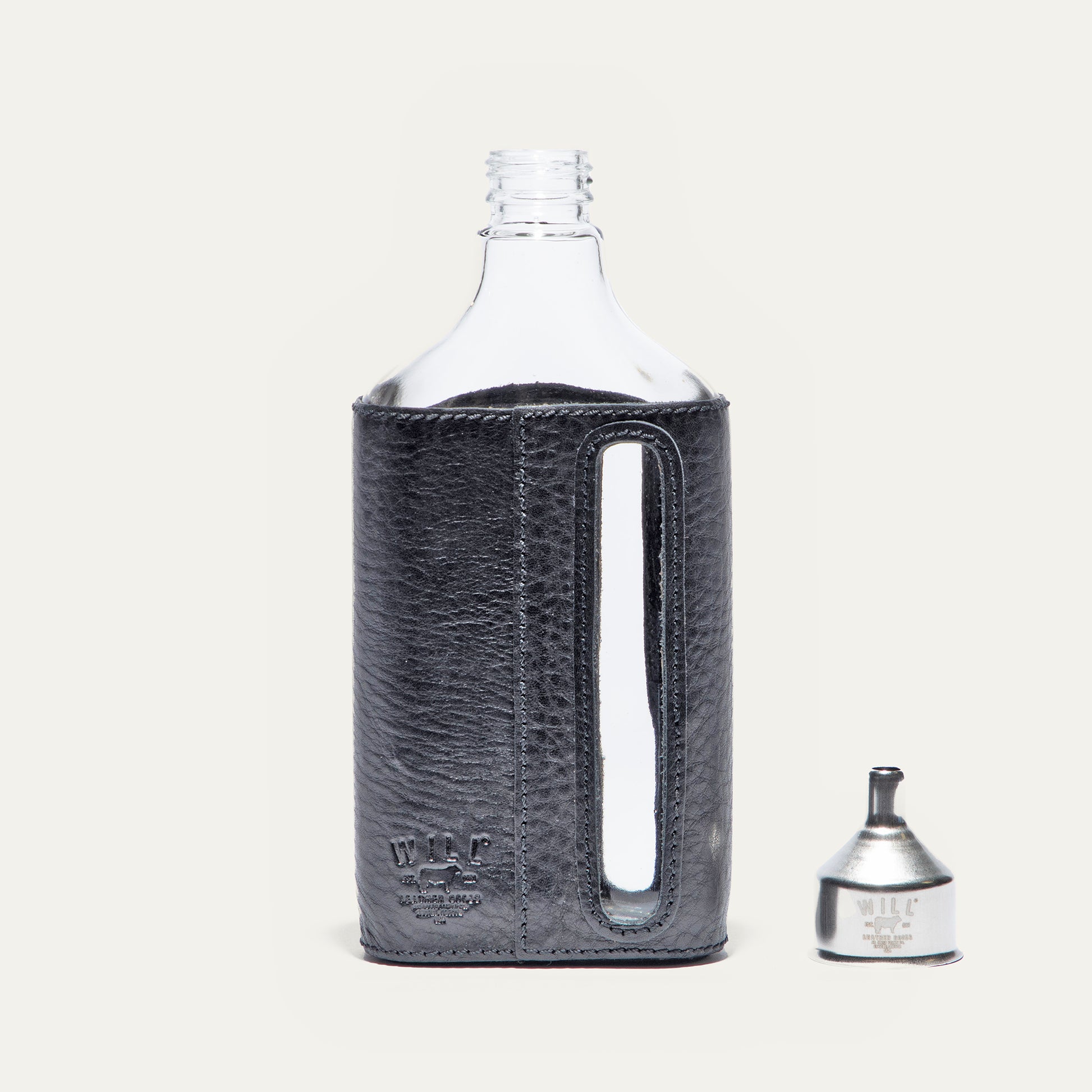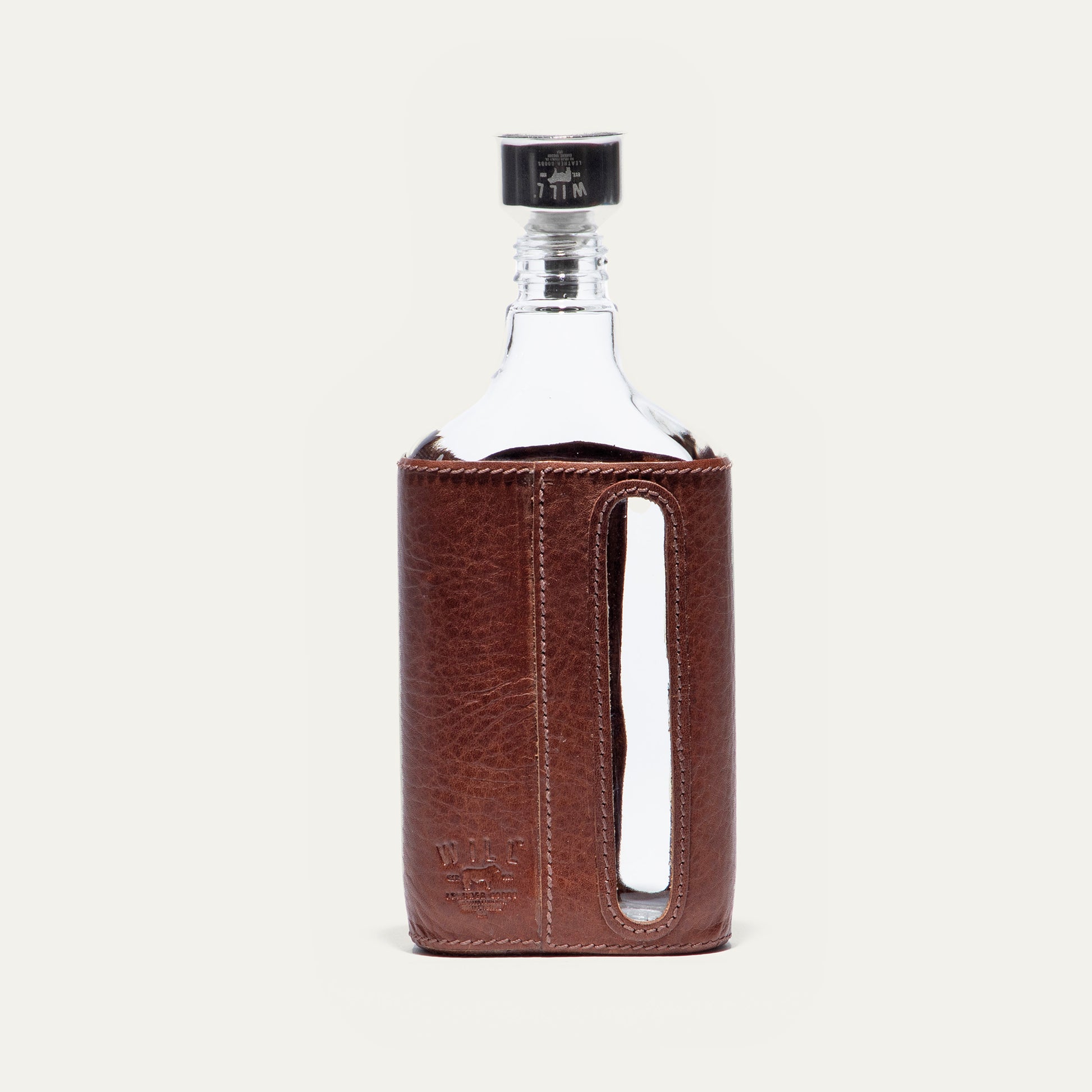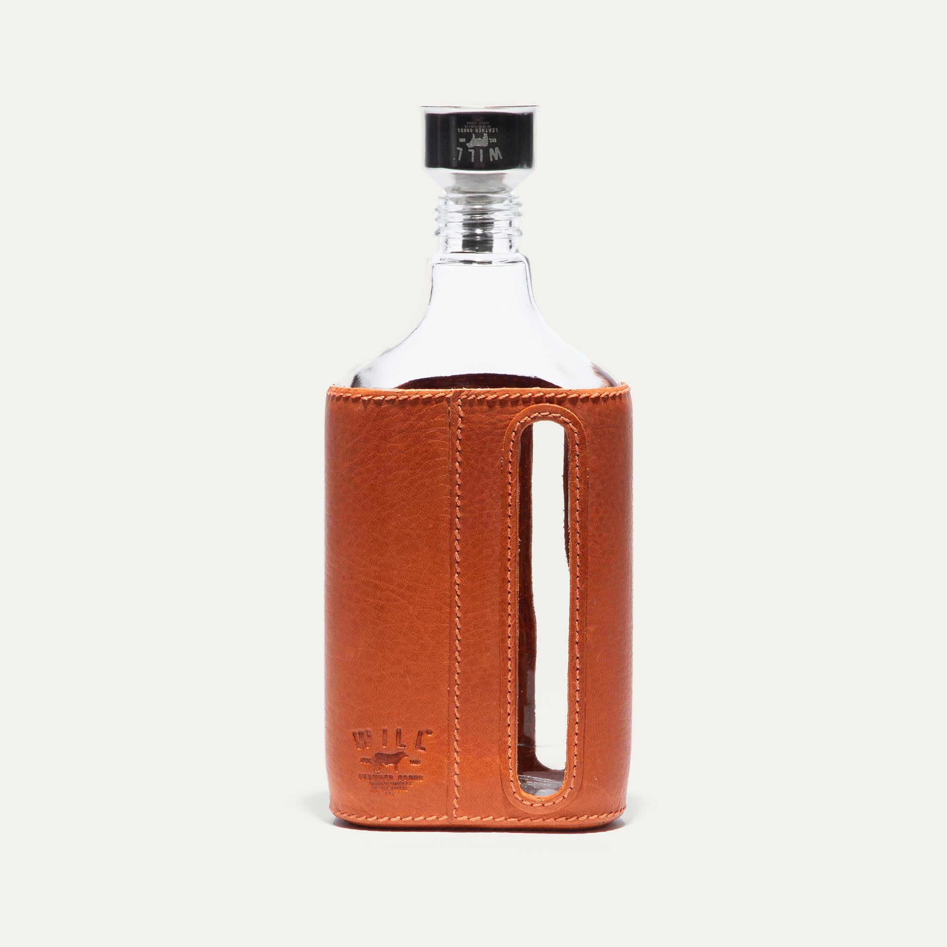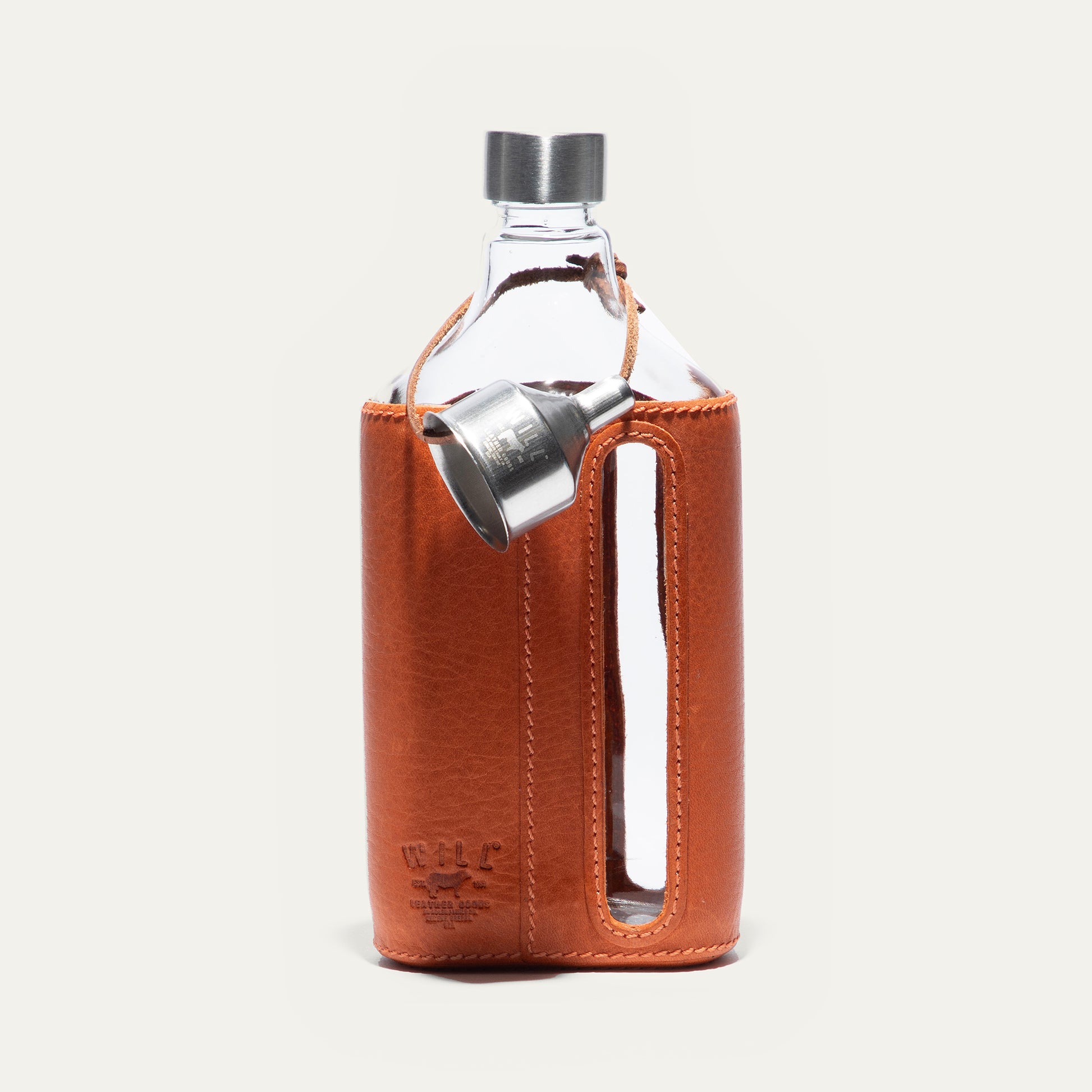 Our 375ml Leather and Glass Flask is wrapped in full-grain, vegetable-tanned leather. Featuring vertical pour windows on each side and a molded leather panel at the base for added stability. Topped with a stainless steel screw-on lid for secure closure and includes a stainless steel funnel for easy filling. Built for a lifetime of libations, our Leather and Glass Flask is built to last. We stand behind our product—guaranteed for life.
