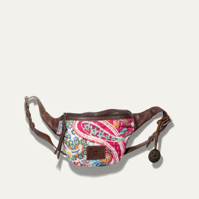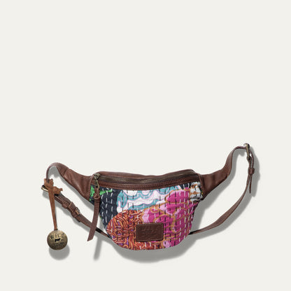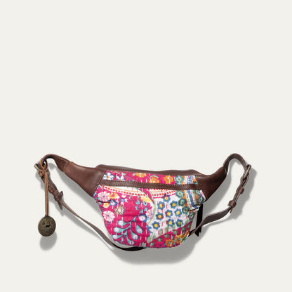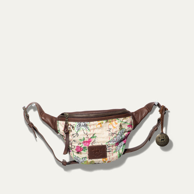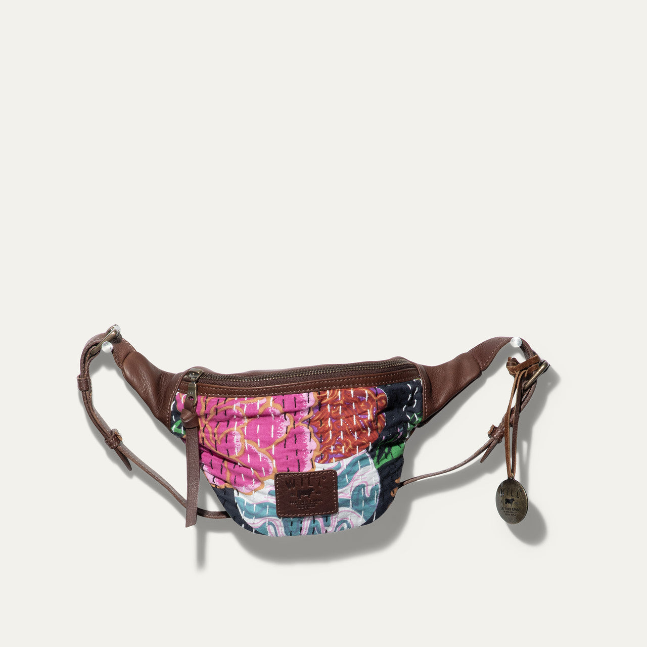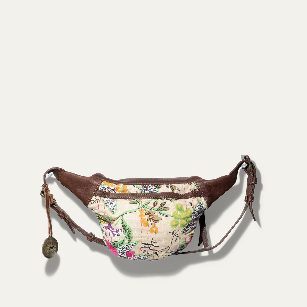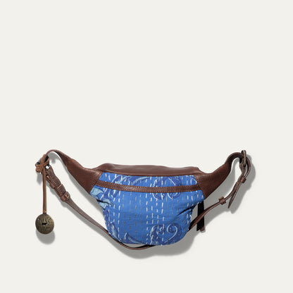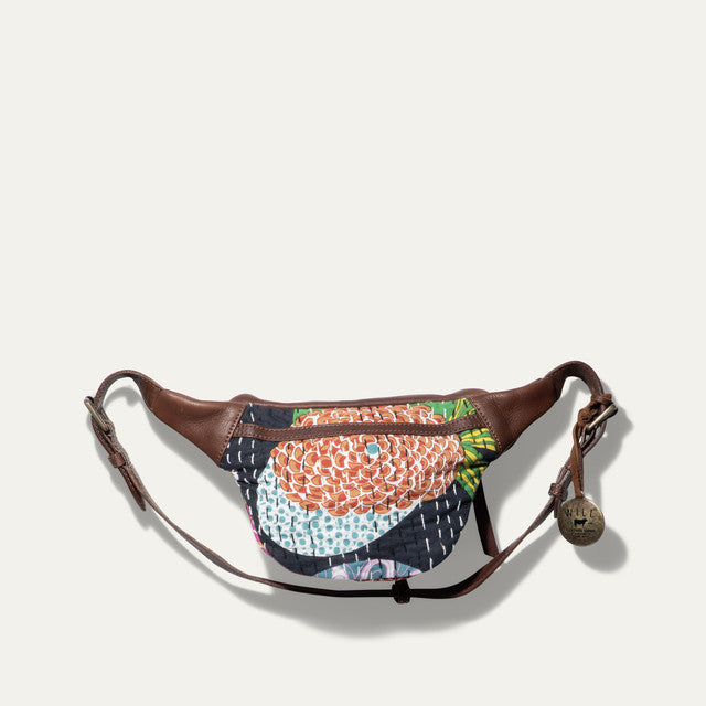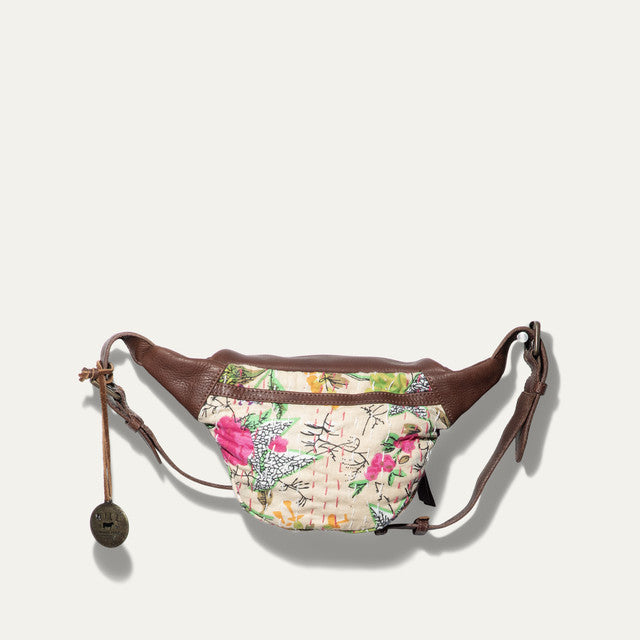 Our one-of-a-kind Kantha Belt Bag is handcrafted from upcycled vintage kantha quilts from the West Bengal region of India and paired with full-grain, vegetable-tanned leather trim. Highly adjustable leather straps allow you to wear this style across the torso, on the shoulder, or around your waist for your hands-free carrying needs. A brass YKK zipper keeps your contents secure, while a slip pocket allows fast access to your keys and phone. Leather binding, steel-riveted handle reinforcements, and industrial-grade nylon thread ensure your Kantha Belt Bag will last a lifetime. We stand behind our product—guaranteed for life.