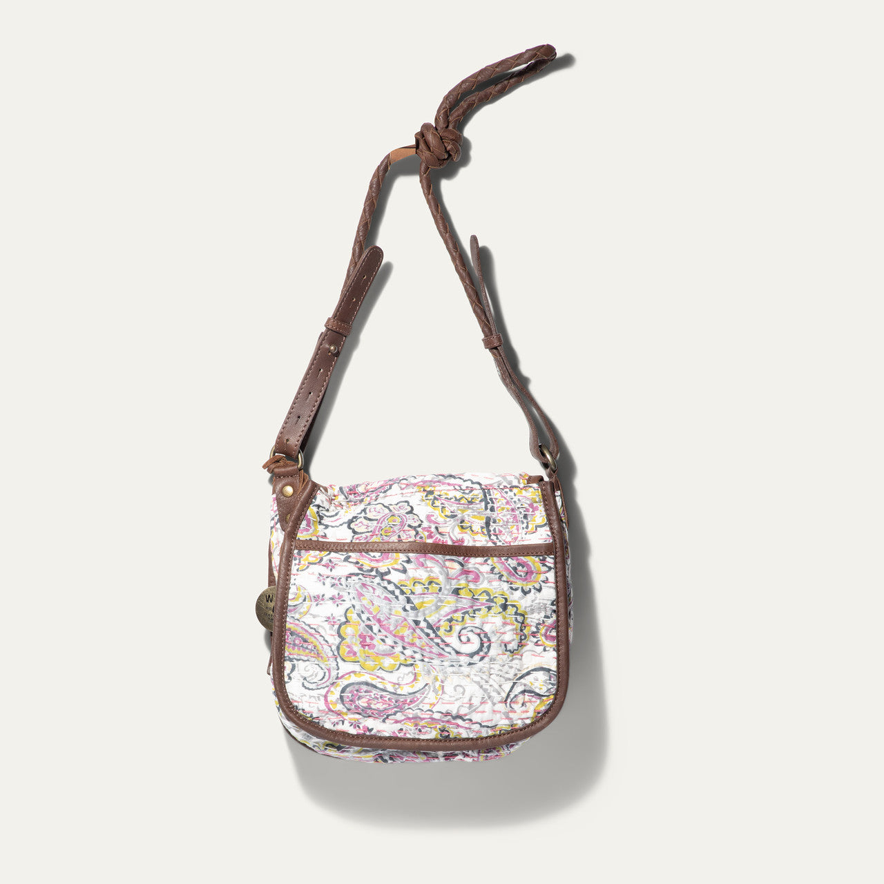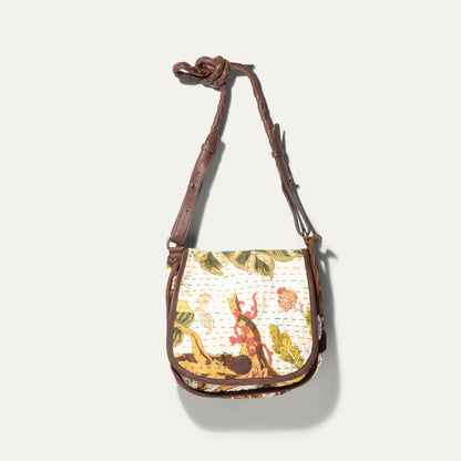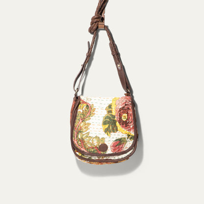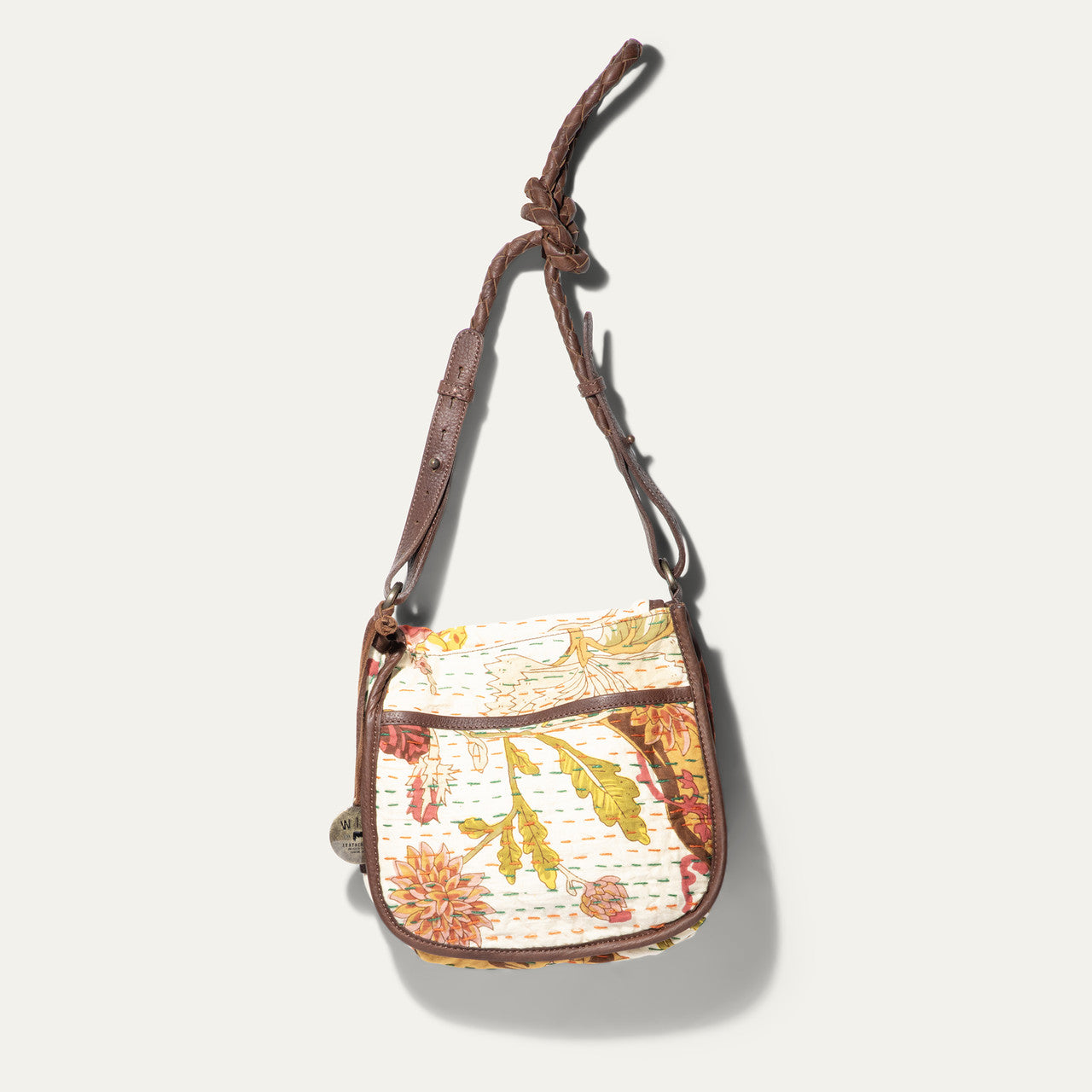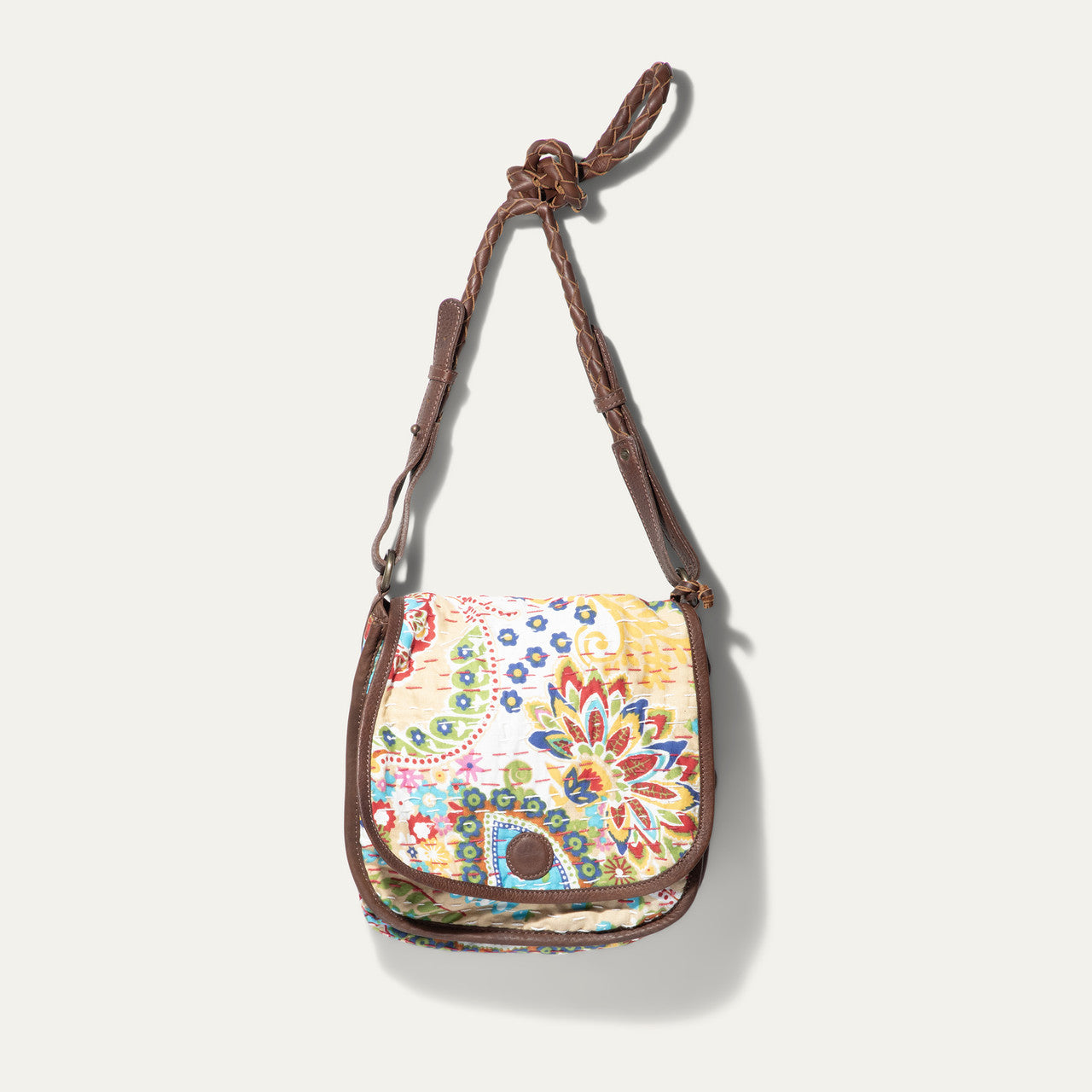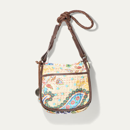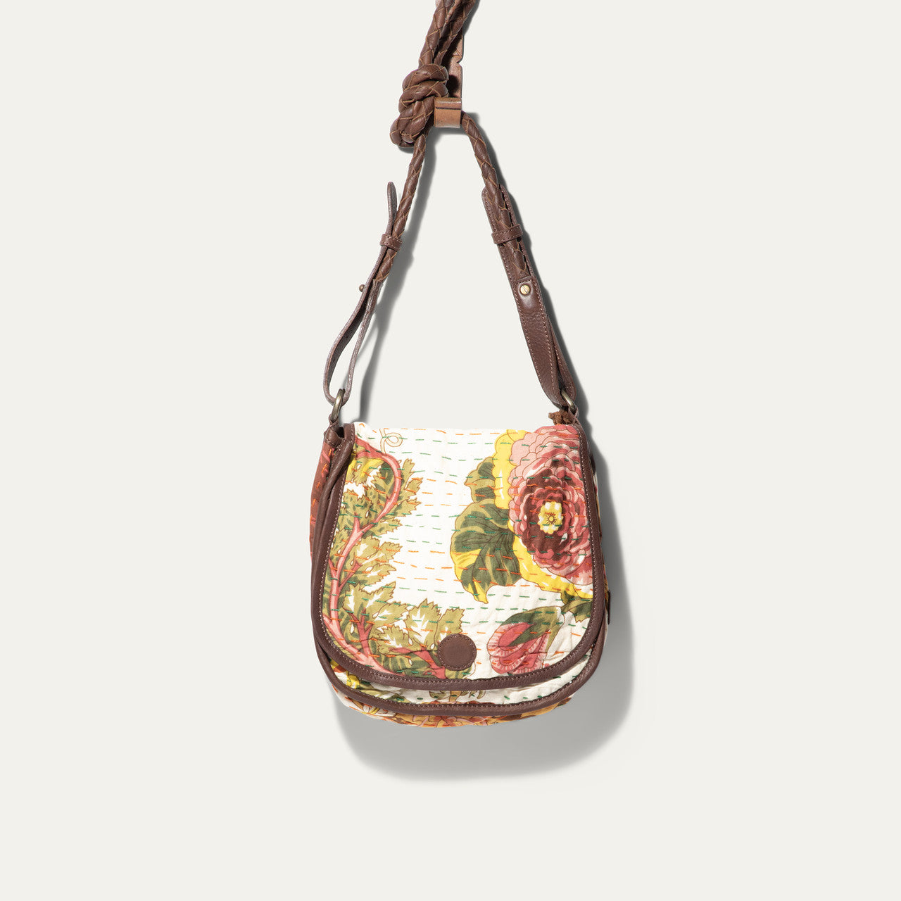 Our one-of-a-kind Kantha Reversible Crossbody is handcrafted from upcycled vintage kantha quilts from the West Bengal region of India and paired with full-grain, vegetable-tanned leather trim. Designed to be reversible to show both unique and artful sides of each quilt, simply flip the Kantha Crossbody inside out to reveal a new design. Adjustable, handwoven, knotted straps fit easily on the shoulder and comfortably across the torso for your hands-free carrying needs. A hidden magnetic snap keeps your contents secure, while a slip pocket allows fast access to your keys and phone. Leather binding, steel-riveted handle reinforcements, and industrial-grade nylon thread ensure your Kantha Reversible Hobo will last a lifetime. We stand behind our product—guaranteed for life.