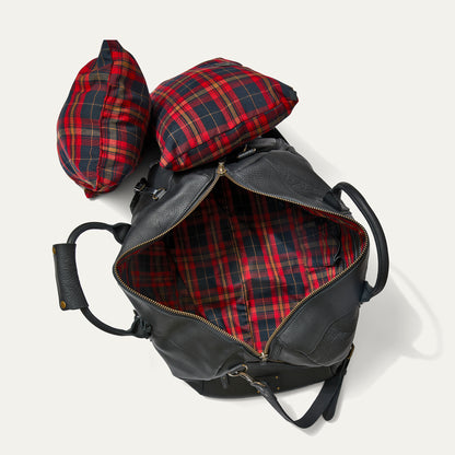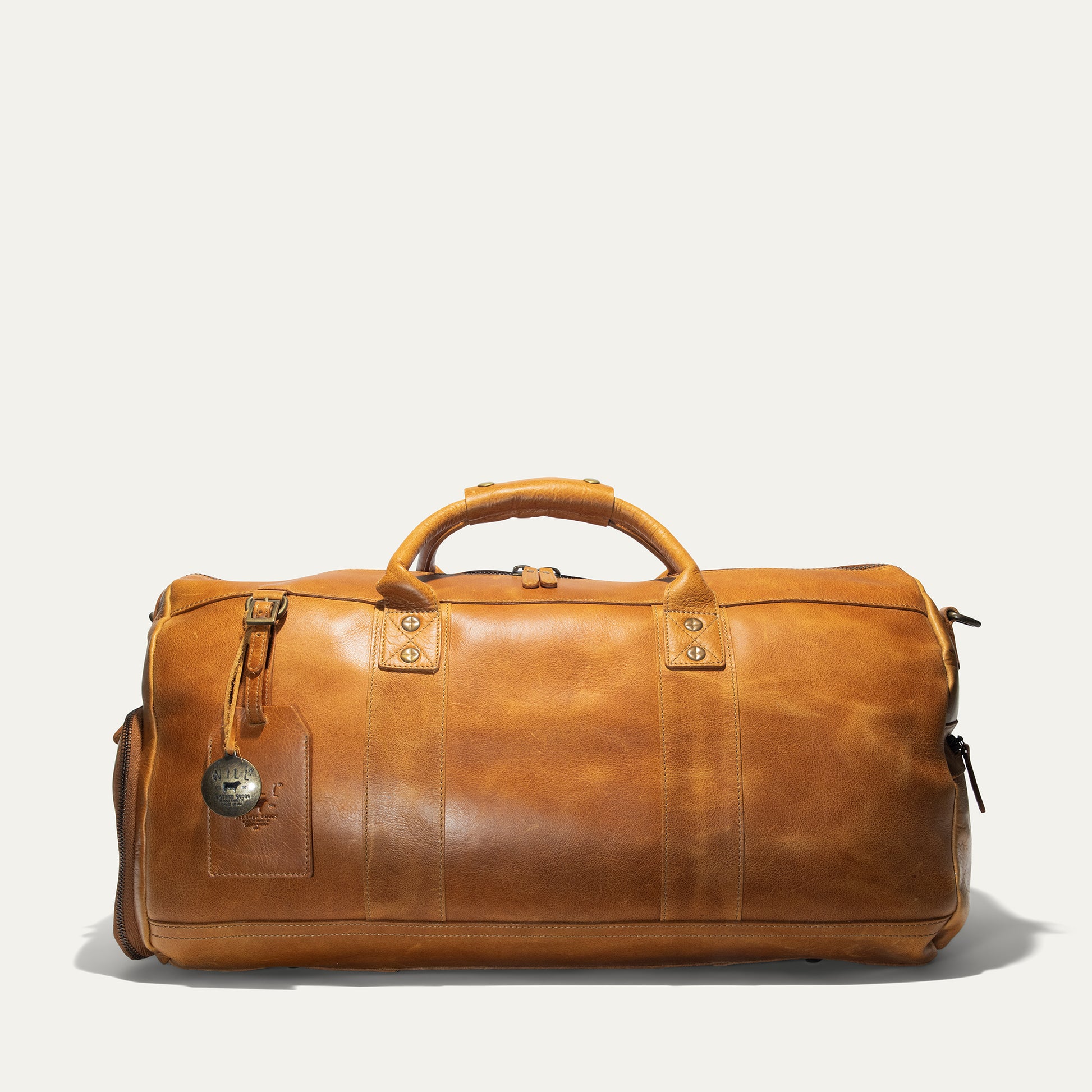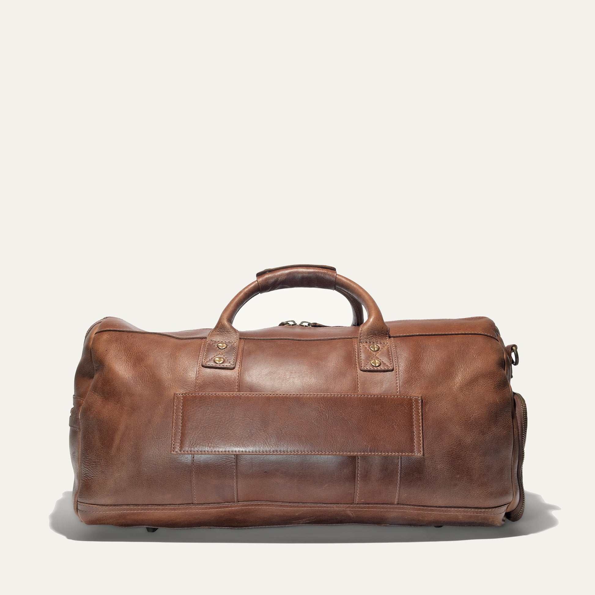 The Leather Atticus Shoe Duffle is handcrafted from full-grain vegetable-tanned leather. A brass zippered shoe compartment is lined in water-resistant nylon, while a dedicated luggage tag allows your duffel to be easily identified. Double-reinforced box stitching, dual hand-hammered steel rivets, and a leather top-handle wrap allow you to tote your duffle by hand. Our detachable and adjustable industrial-grade 100% cotton webbing strap with removable memory foam shoulder pad can be slung on the shoulder or across your torso. Lined in our signature plaid, the interior features extensive organization—including a roomy zipper pocket, three slip pockets, a business card slot, an antique brass key clip, and a removable padded laptop sleeve. A leather strap on the exterior back panel allows you to easily slide your Atticus onto the top handle of your suitcase for convenient travels. Our skilled artisans take 139 steps from the first cut of the leather to the final hand-hammered rivet to ensure our Atticus Shoe Duffle lasts a lifetime. We stand behind our product—guaranteed for life.