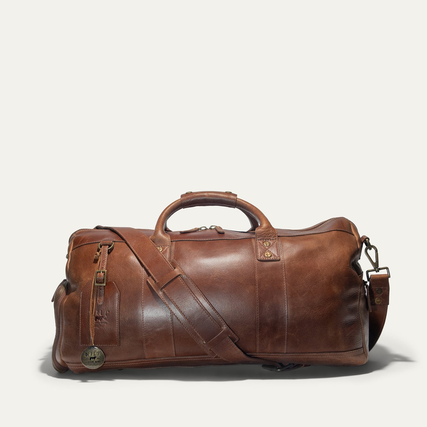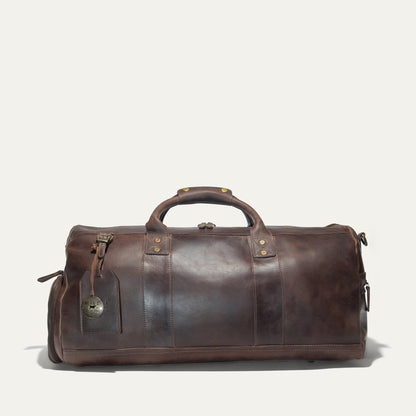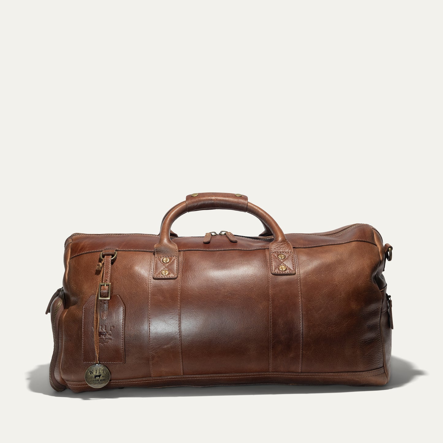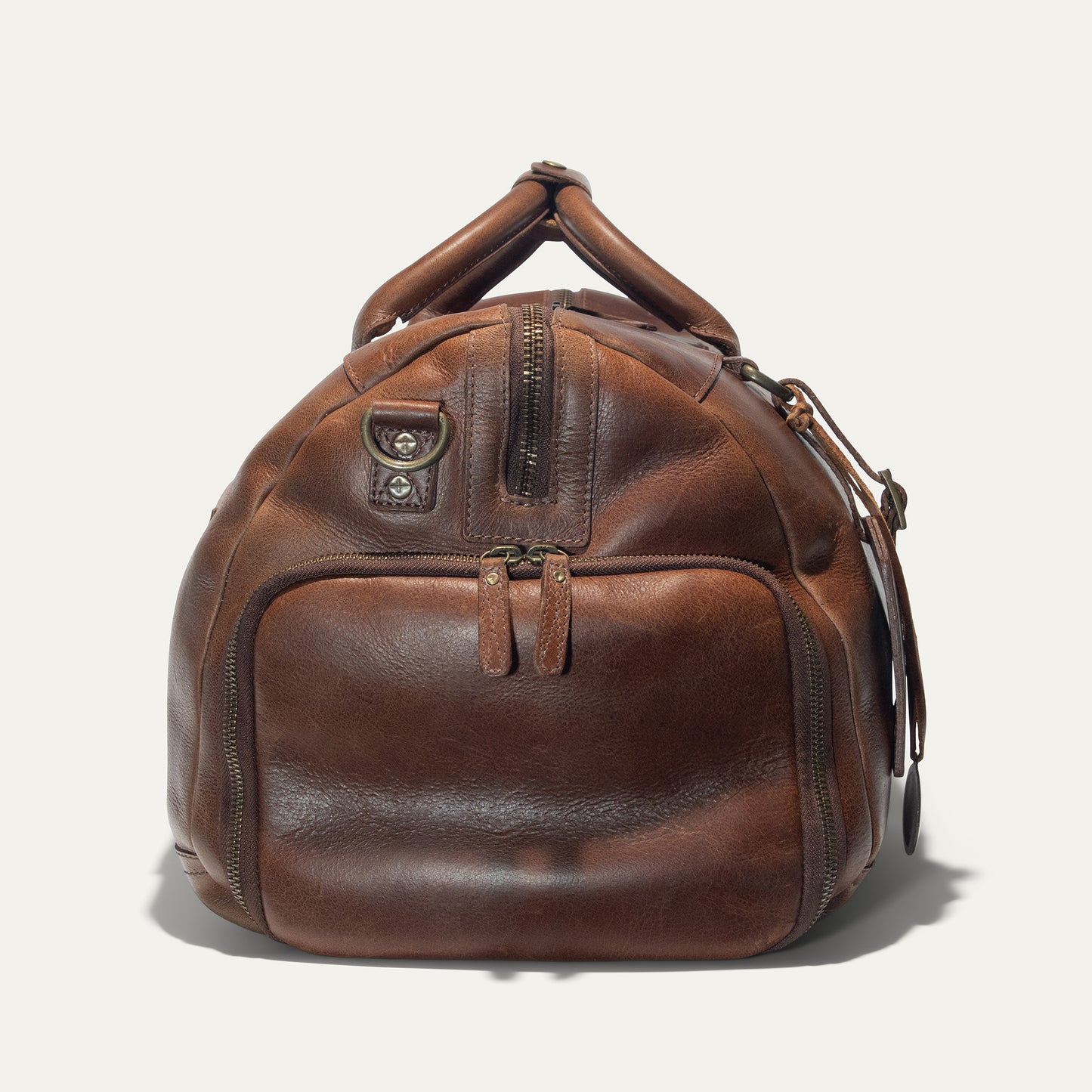 The Leather Atticus Shoe Duffle is handcrafted from full-grain vegetable-tanned leather. A brass zippered shoe compartment is lined in water-resistant nylon, while a dedicated luggage tag allows your duffel to be easily identified. Double-reinforced box stitching, dual hand-hammered steel rivets, and a leather top-handle wrap allow you to tote your duffle by hand. Our detachable and adjustable industrial-grade 100% cotton webbing strap with removable memory foam shoulder pad can be slung on the shoulder or across your torso. Lined in our signature plaid, the interior features extensive organization—including a roomy zipper pocket, three slip pockets, a business card slot, an antique brass key clip, and a removable padded laptop sleeve. A leather strap on the exterior back panel allows you to easily slide your Atticus onto the top handle of your suitcase for convenient travels. Our skilled artisans take 139 steps from the first cut of the leather to the final hand-hammered rivet to ensure our Atticus Shoe Duffle lasts a lifetime. We stand behind our product—guaranteed for life.