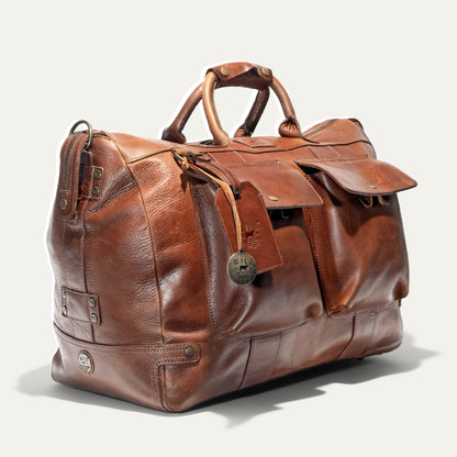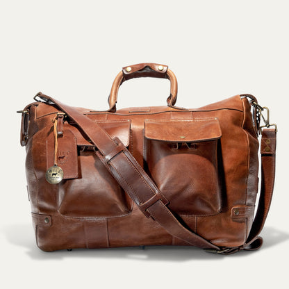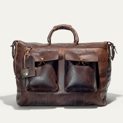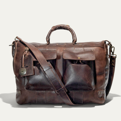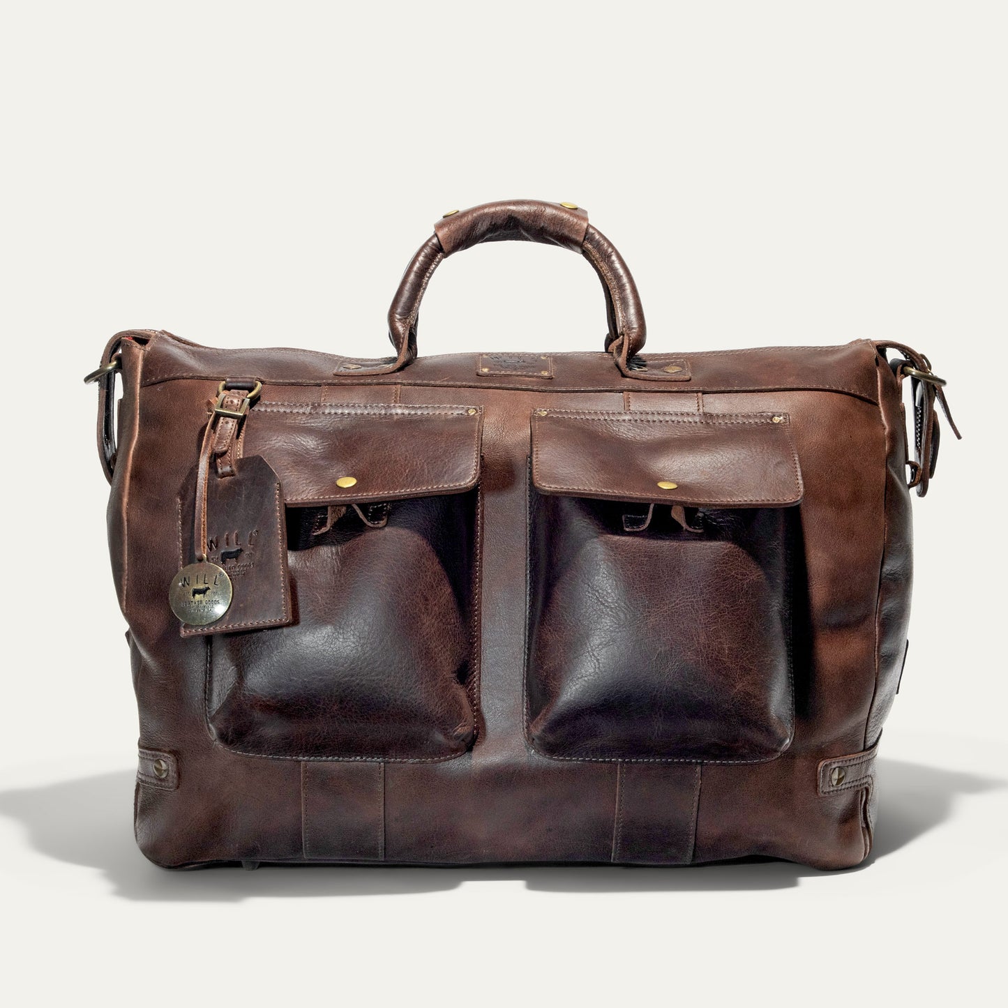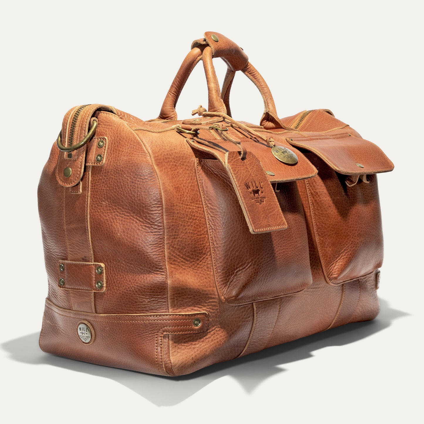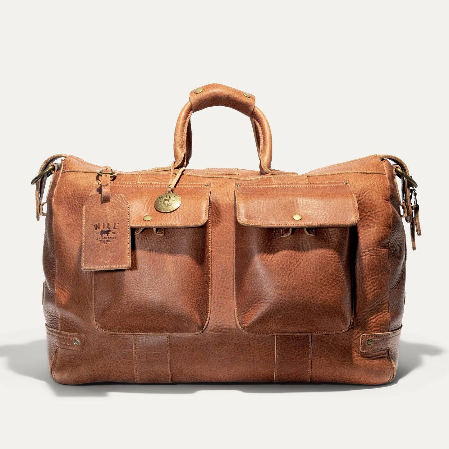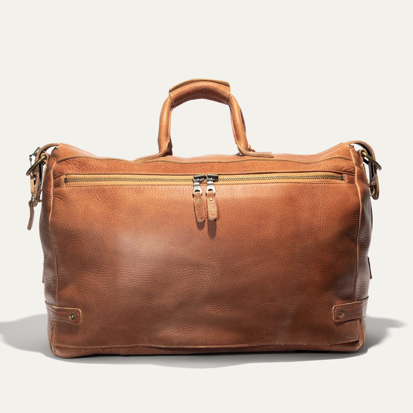 Designed and built for a lifetime of journeys, our Signature Leather Travel Duffle is handcrafted with full-grain, vegetable-tanned leather. Double-reinforced box stitching, dual hand-hammered steel rivets, and a leather top-handle wrap allow you to tote your duffle by hand. Our detachable and adjustable industrial-grade 100% cotton webbing strap with removable memory foam shoulder pad can be slung on the shoulder or across your torso. A convenient hidden zippered trolley sleeve allows you to securely place your Travel Duffle on top of a rolling suitcase. Two exterior flap pockets close with steel snaps and finger bridges for easy access, while a large back zipper pocket will hold your belongings as you head through airport security. Lined in our signature plaid, the interior features extensive organization—including a roomy zipper pocket, three slip pockets, a business card slot, an antique brass key clip, and a removable padded laptop sleeve. Our skilled artisans take 139 steps from the first cut of the leather to the final hand-hammered rivet to ensure our Travel Duffle lasts a lifetime. We stand behind our product—guaranteed for life