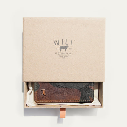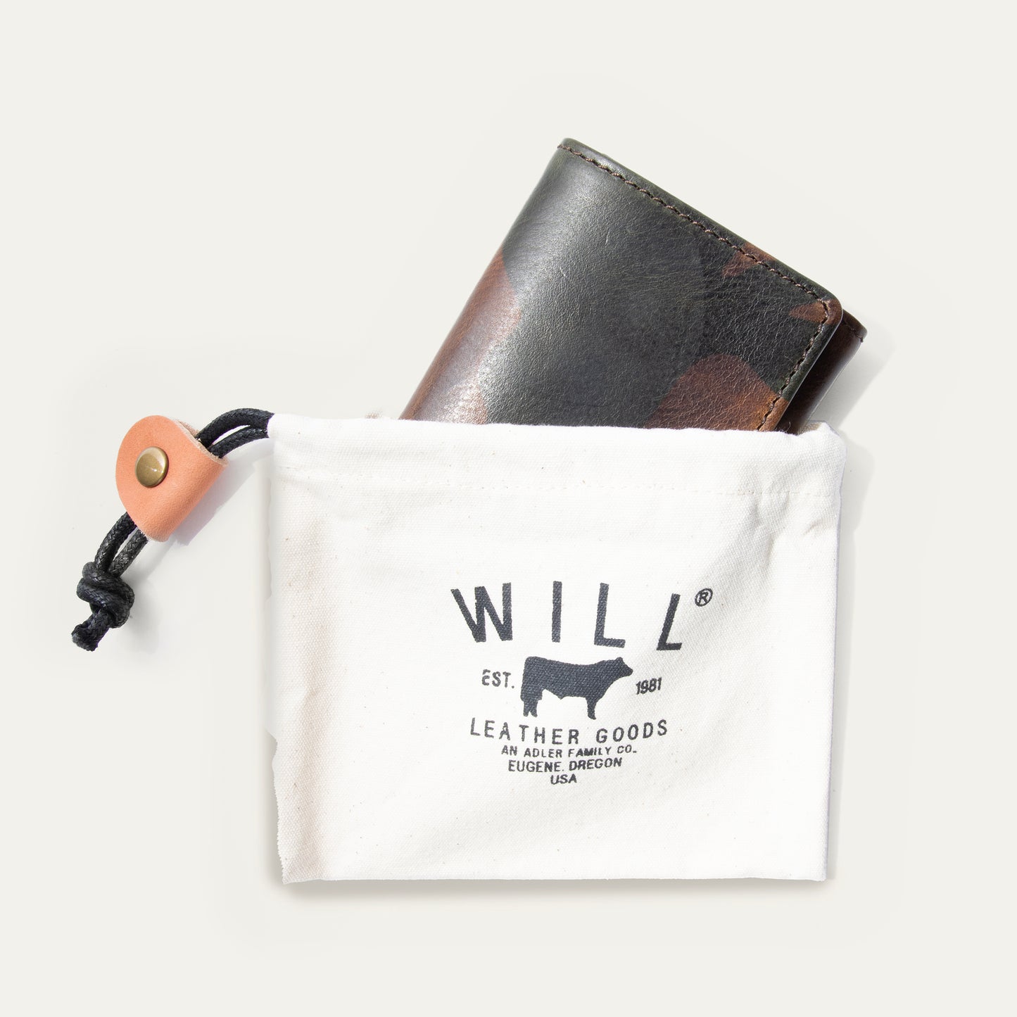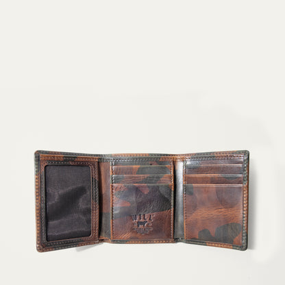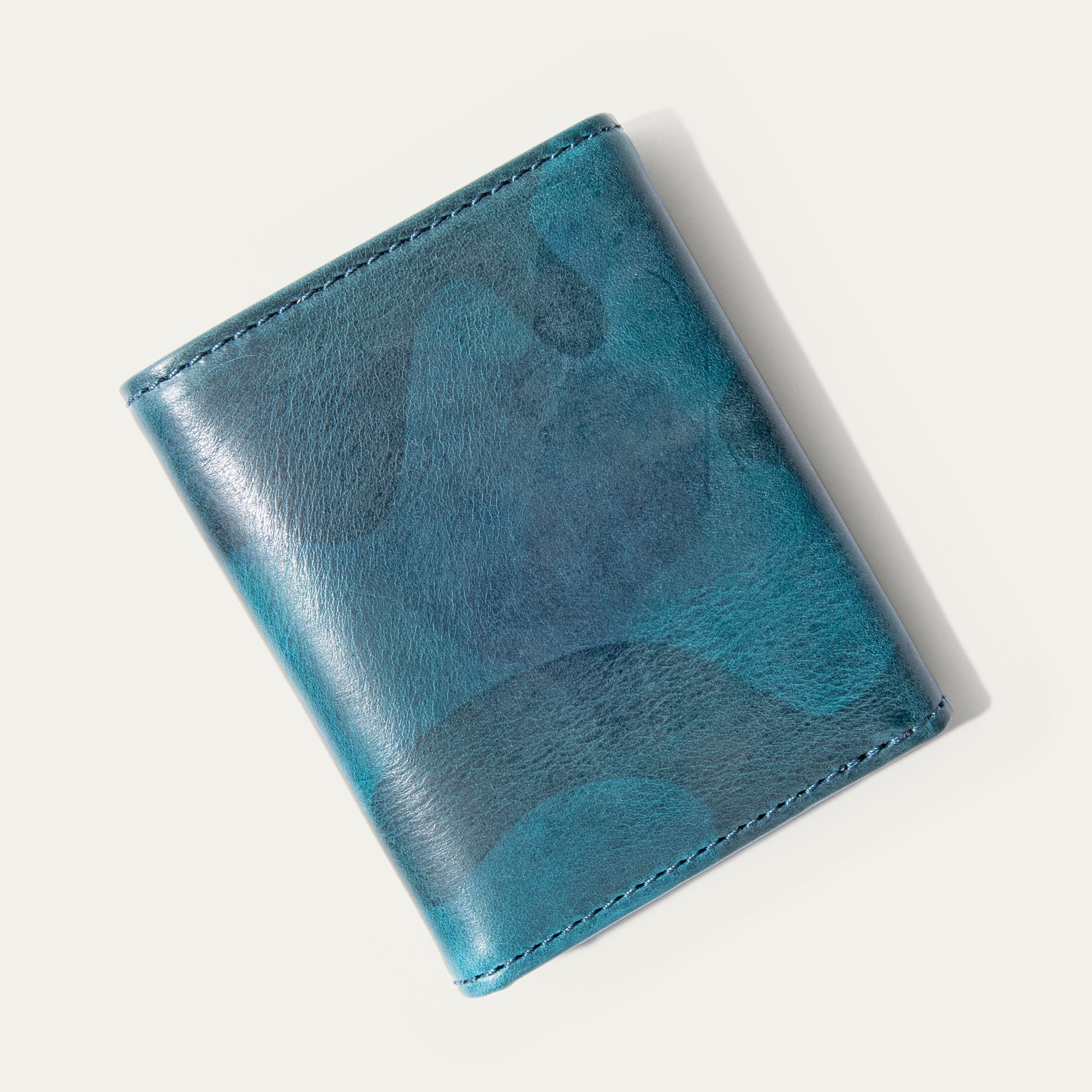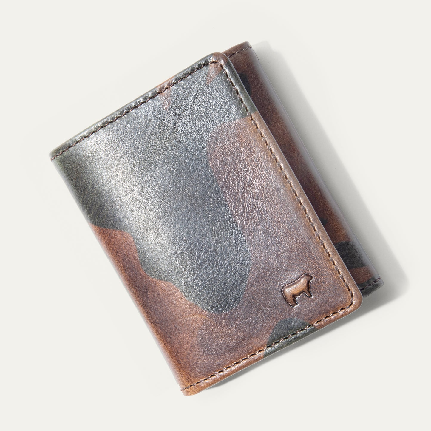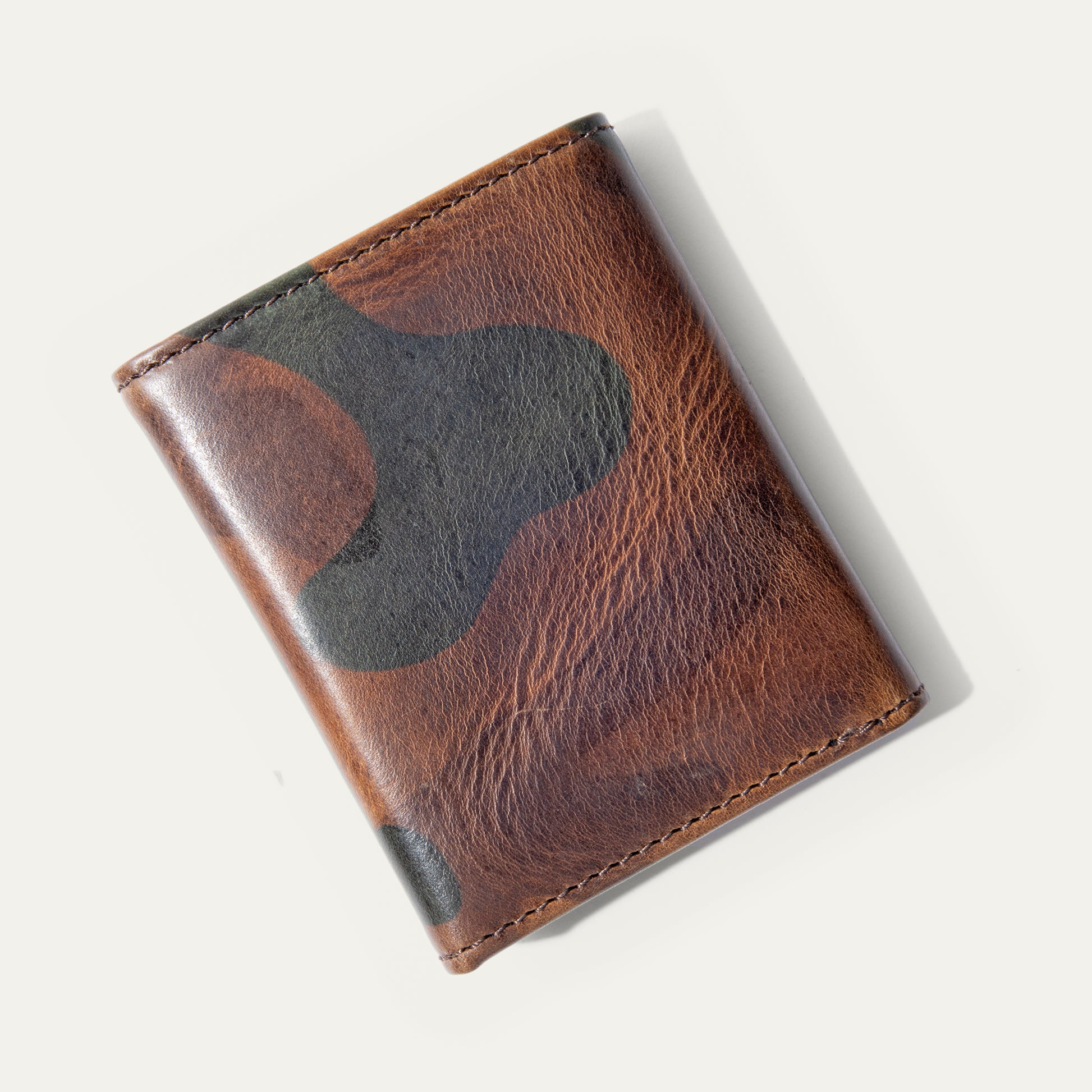 A subtle camoflauge motif distinguishes this smooth glazed Italian calfskin leather. The smaller pores found in calfskin leather make it even more water resistant, and of course soft and supple to the touch.