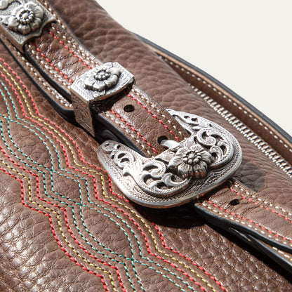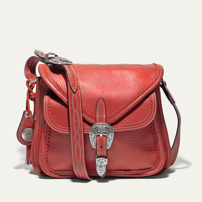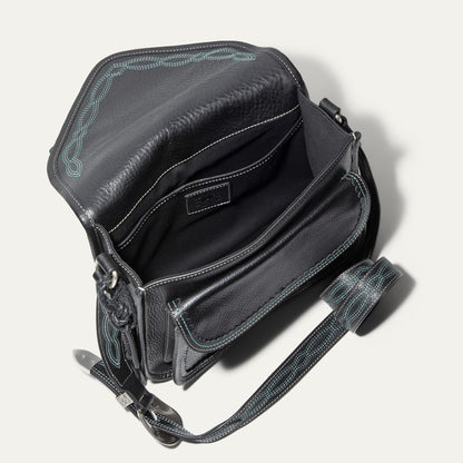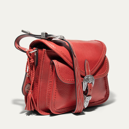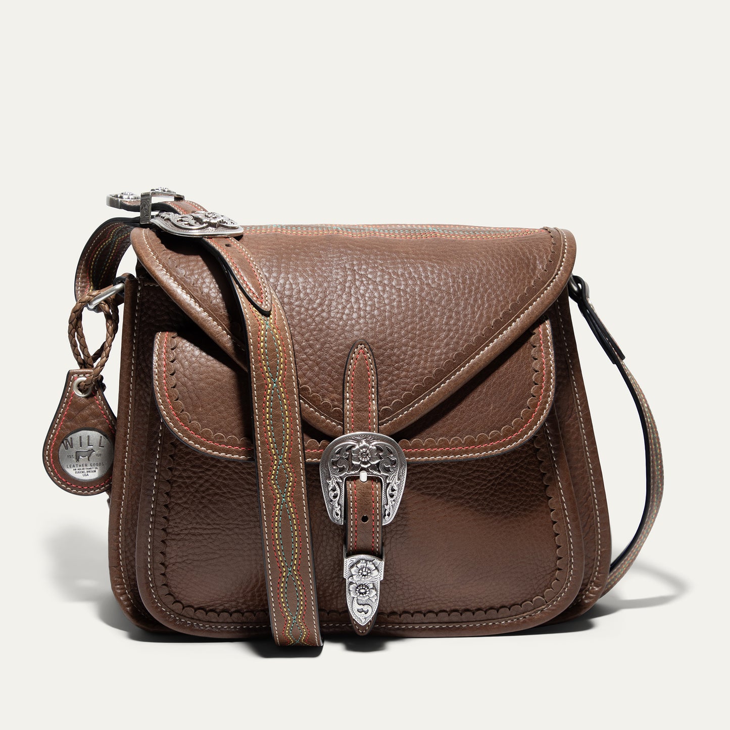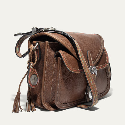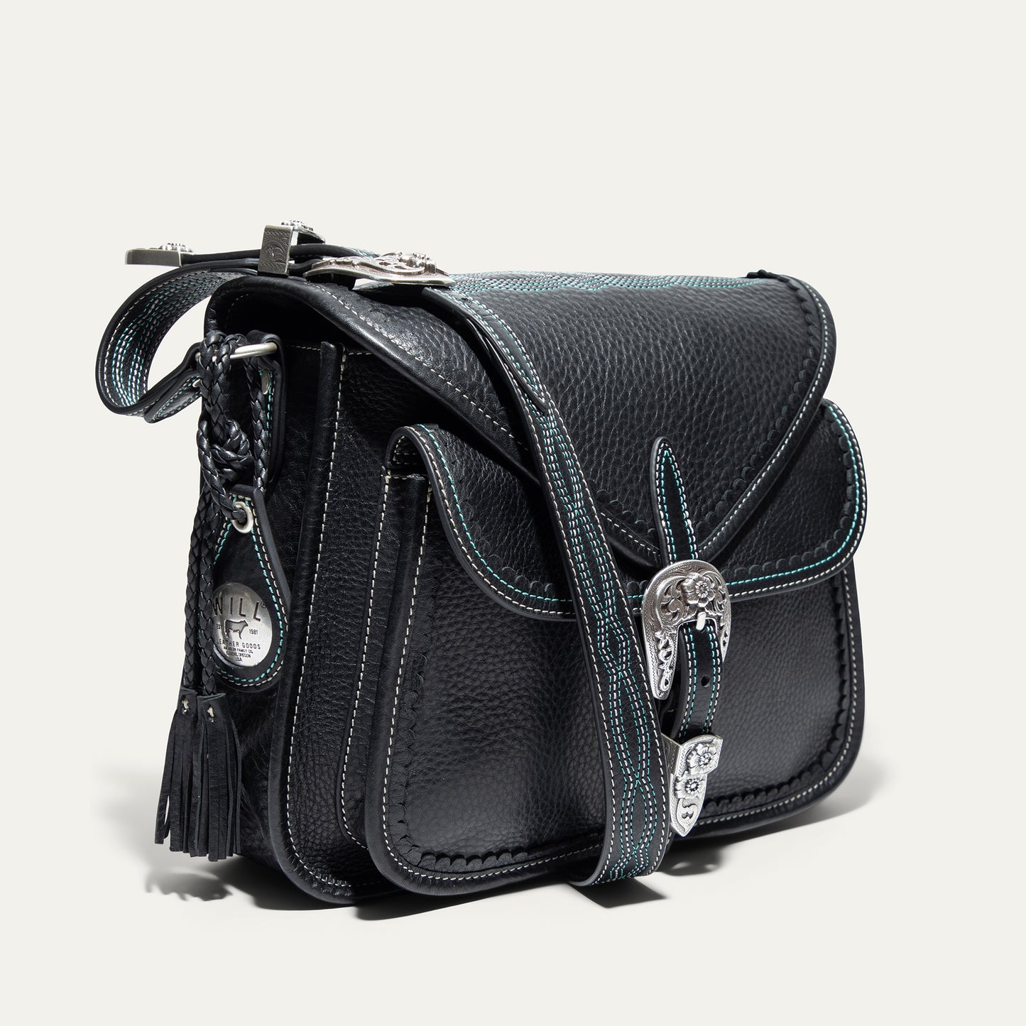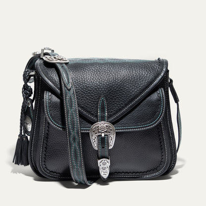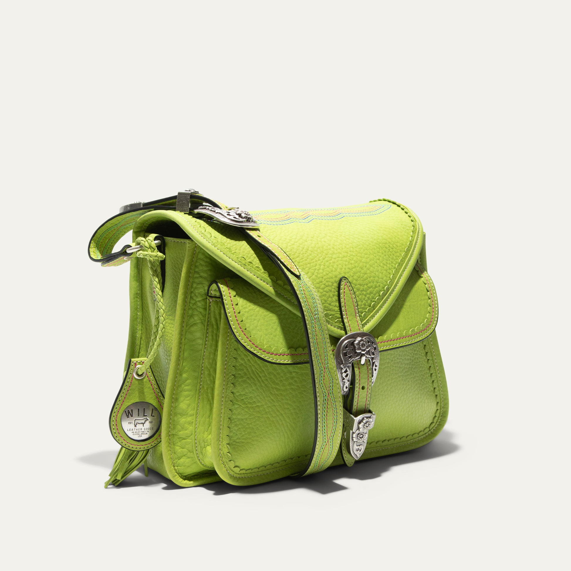 The Odessa Crossbody is handcrafted from full-grain, vegetable-tanned leather. Adorned with colorful cowboy boot stitching, the flap features an antique sterling silver finish three-piece western buckle set and secures with a magnetic snap. An adjustable boot-stitched leather strap adjusts with a western three-piece buckle set to fit comfortably on the shoulder or across the body. Scalloped leather trim adds an artisanal touch. A hand-braided leather strap with tassels and our leather-framed WILL medallion add a decorative detail. Under the flap, the exterior has a flap pocket for easy and fast access to your essentials, while a brass YKK zippered pocket keeps items secure and close to your body. The lined interior contains a slip pocket. Our artisans use industrial-grade, heavy-gauge nylon thread, leather binding, and steel rivets to ensure durability. We stand behind our product—guaranteed for life.