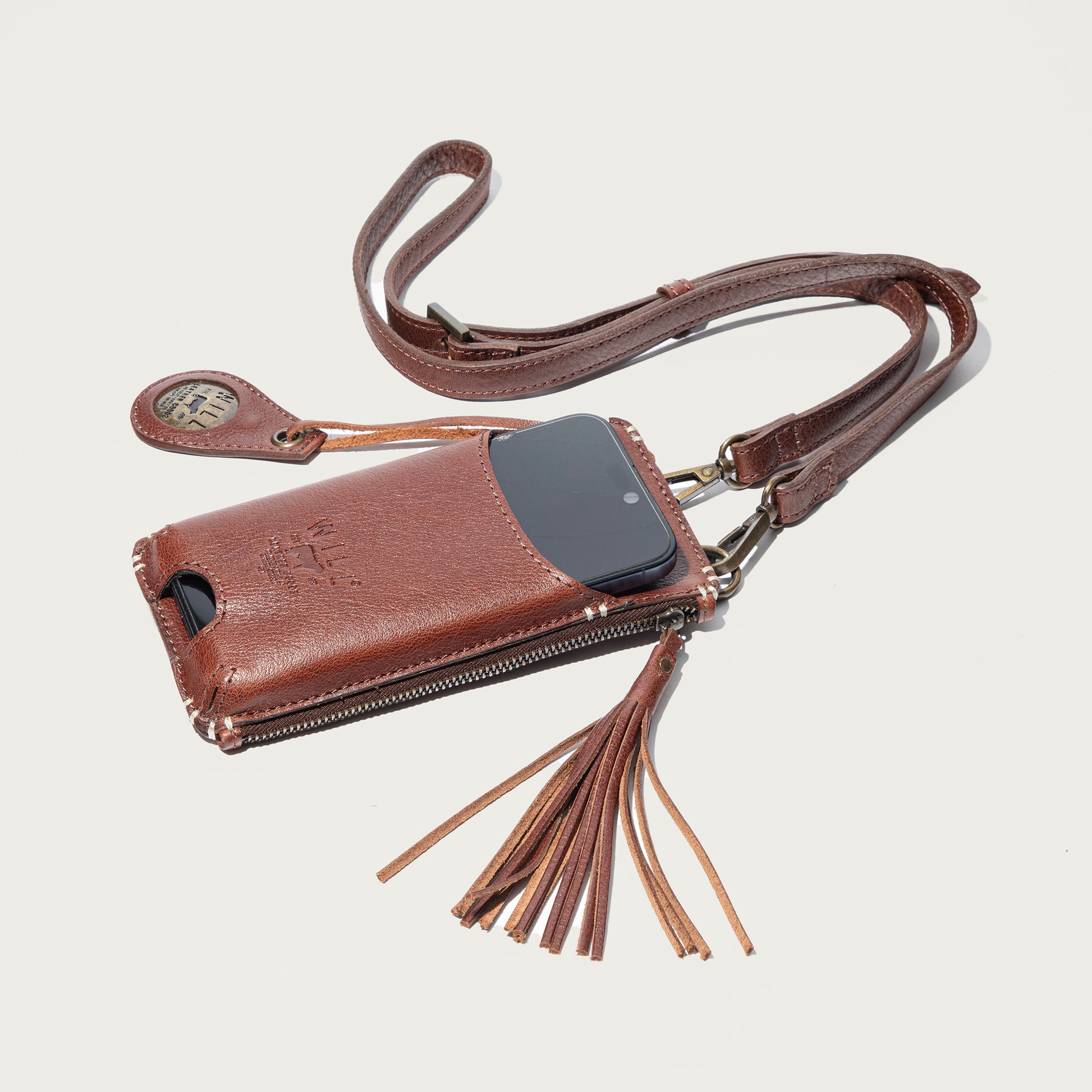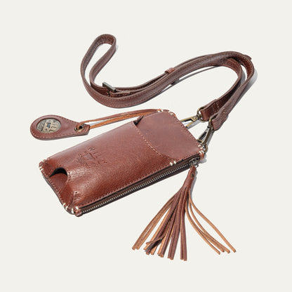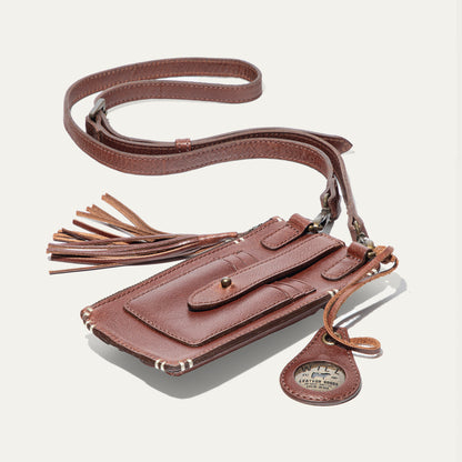 The Mini Phone Crossbody is handcrafted from full-grain, vegetable-tanned leather. An exterior pocket keeps your phone at the ready, while three tab-closure credit card slots keep you organized. The main compartment uses a smooth-running YKK brass zipper, and the highly adjustable strap allows you to wear this style on your shoulder or across your torso. Hand-stitched wax cord bar-tacks at the corners add reinforcement, ensuring the Mini Phone Crossbody lives up to our Lifetime Guarantee. We stand behind our product—guaranteed for life.