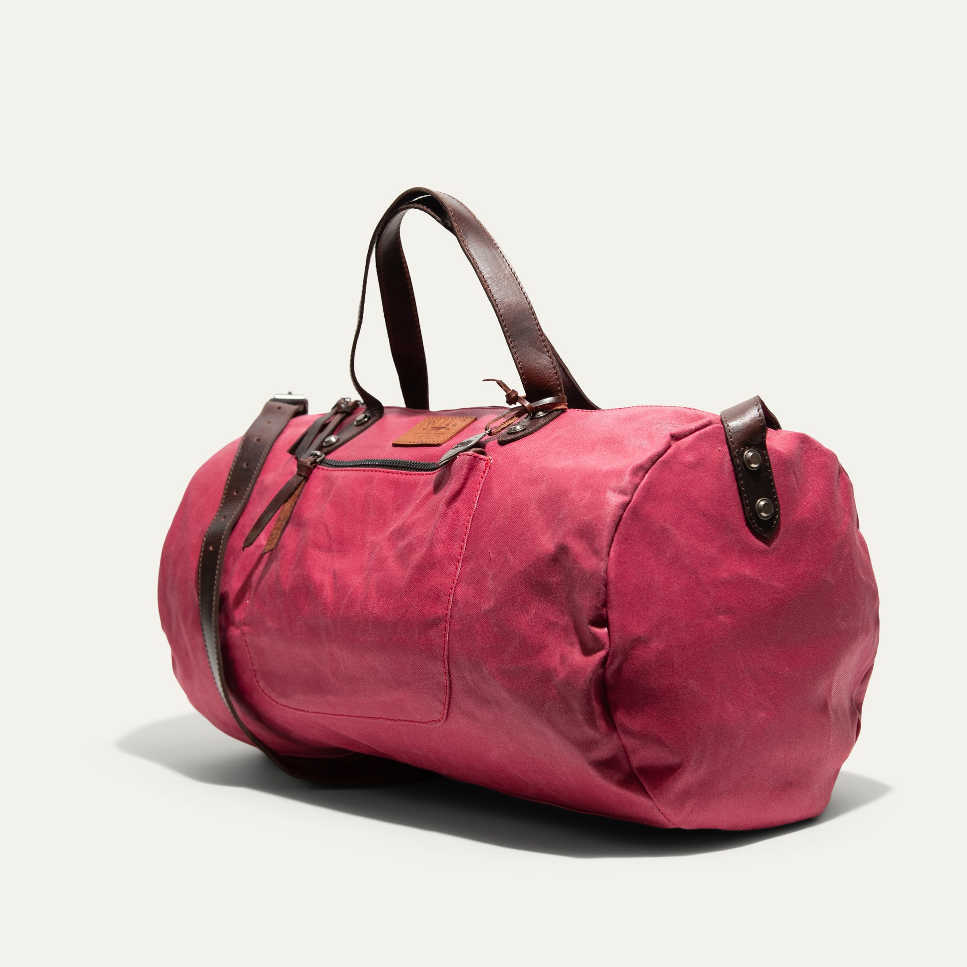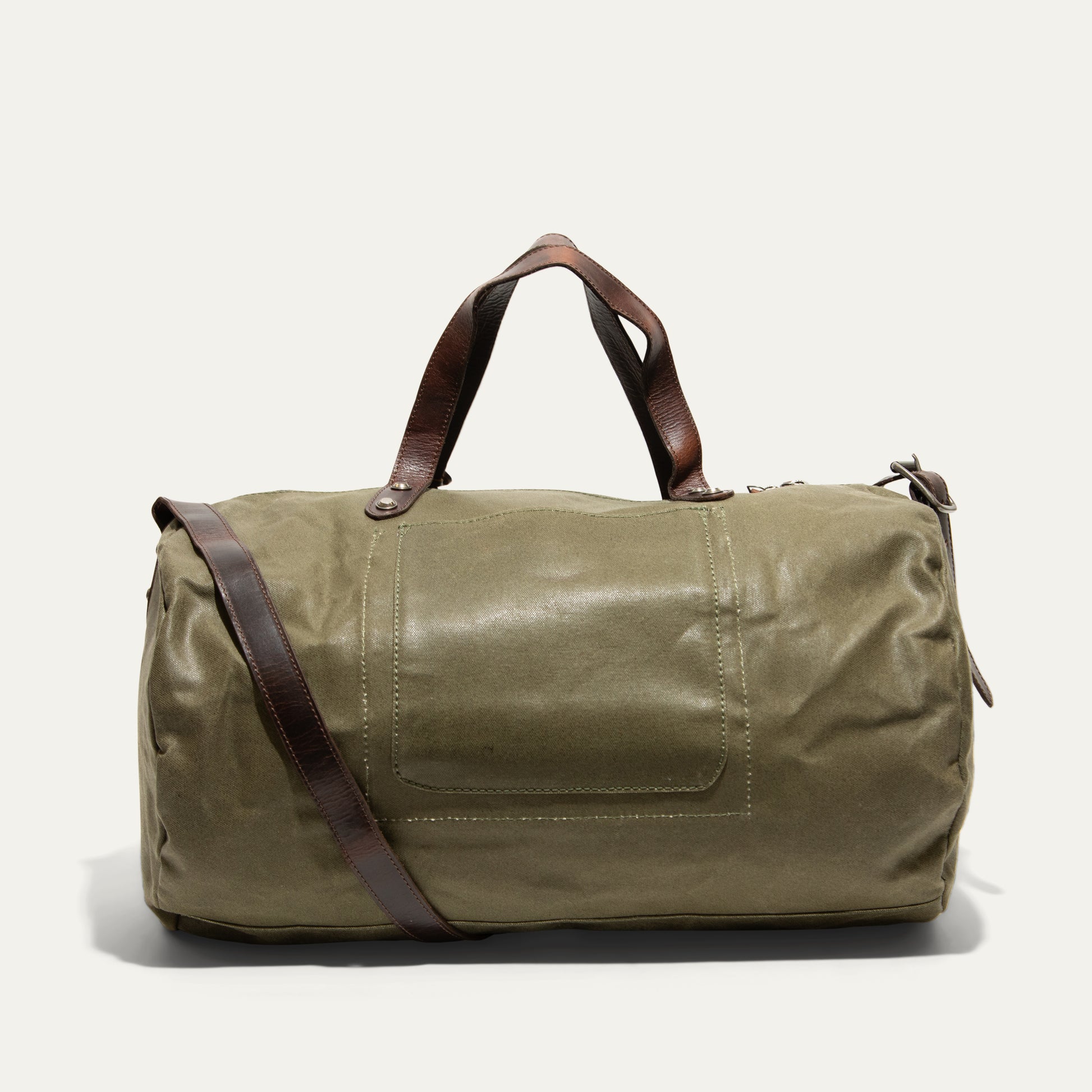 Crafted from durable painted waxed canvas and accented with rich heritage leather trim, this duffle is built for journeys both near and far. Industrial antique brass rivets reinforce every stitch, while a secure zip-top closure keeps your essentials protected. Carry it your way with the adjustable crossbody strap, and keep the small things close at hand with thoughtfully placed exterior slip and zip pockets. Inside, three additional slip pockets offer effortless organization. Rugged, timeless, and unlined for a natural feel—this is a bag made to travel beautifully.