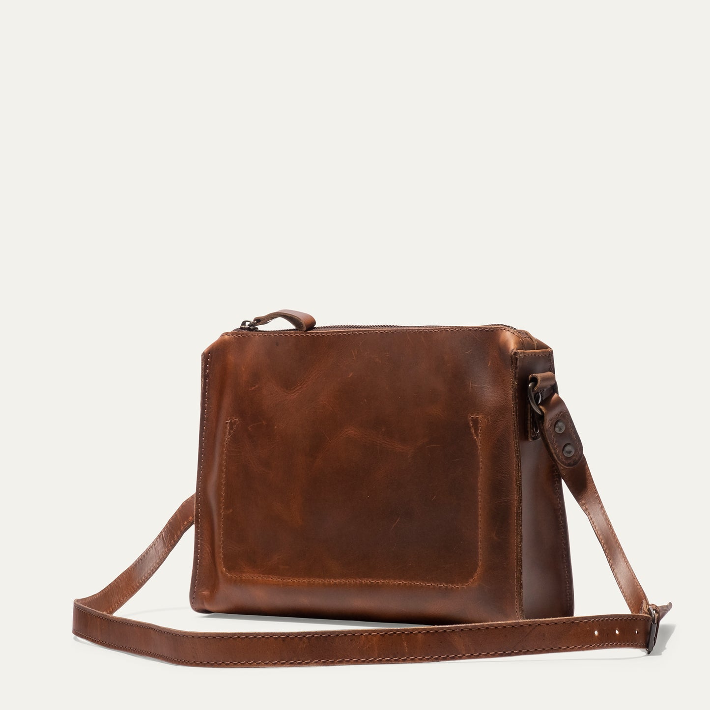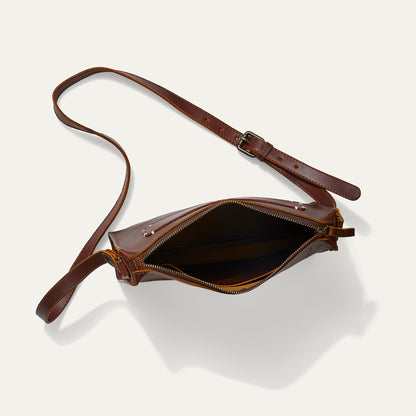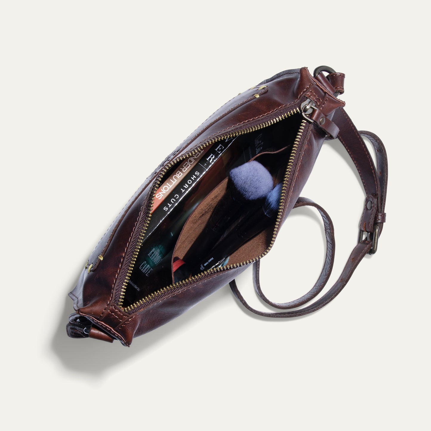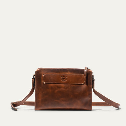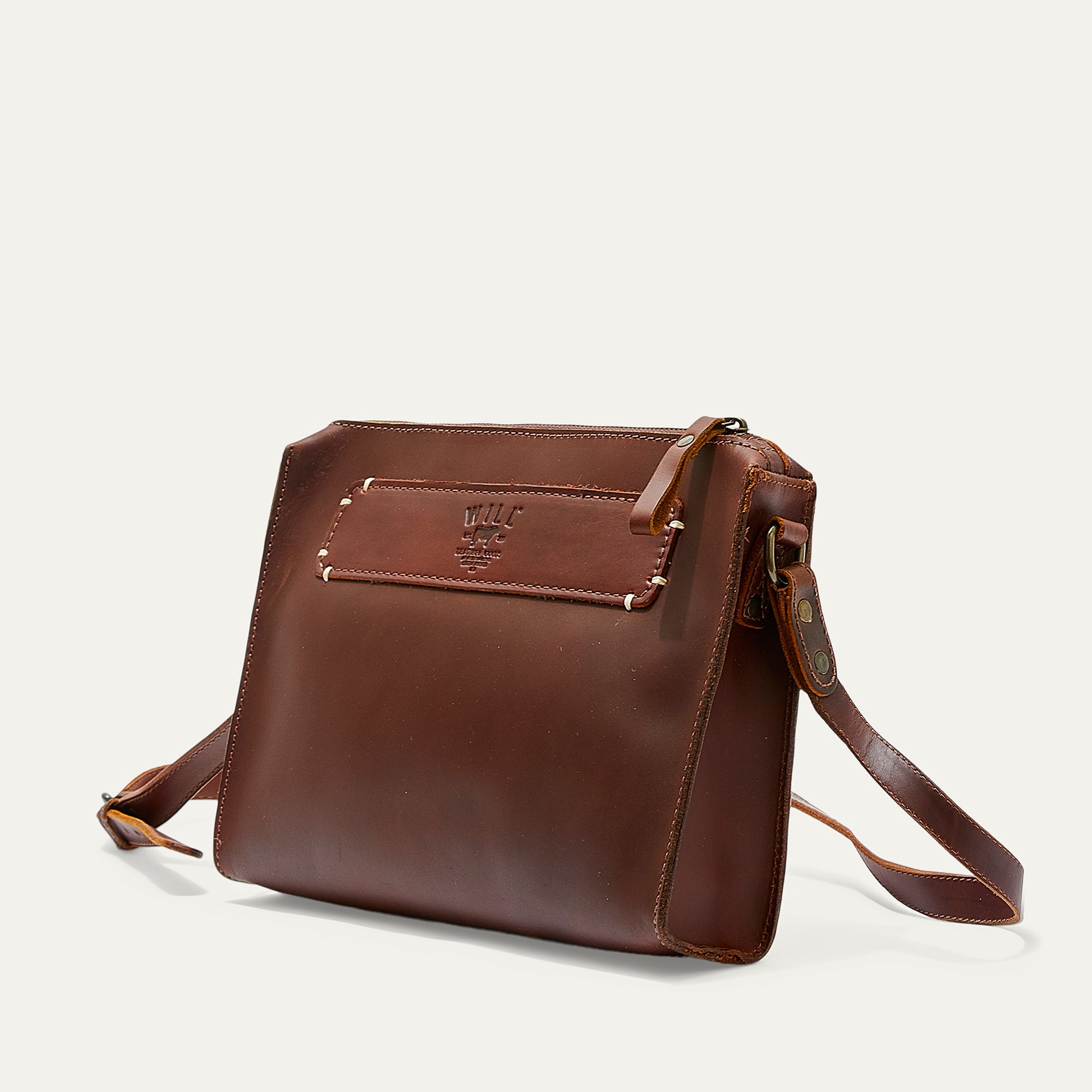 Our Simple Crossbody is handcrafted from full-grain, vegetable-tanned leather. Designed with the idea of showing the art of leathercraft, the Simple Collection features an unlined interior, which allows you to see how Will Leather Goods are truly built to last. A leather panel debossed with the Will Leather Goods logo adds structure, while hand-stitched, wax cord bar-tacks add an artisanal detail. The interior features a leather triple pocket for organization of your phone, sunglasses, and keys. A smooth-running brass YKK zipper secures the contents of the Simple Crossbody. Dual steel rivets and box stitching secure the adjustable crossbody strap. We stand behind our product—guaranteed for life.