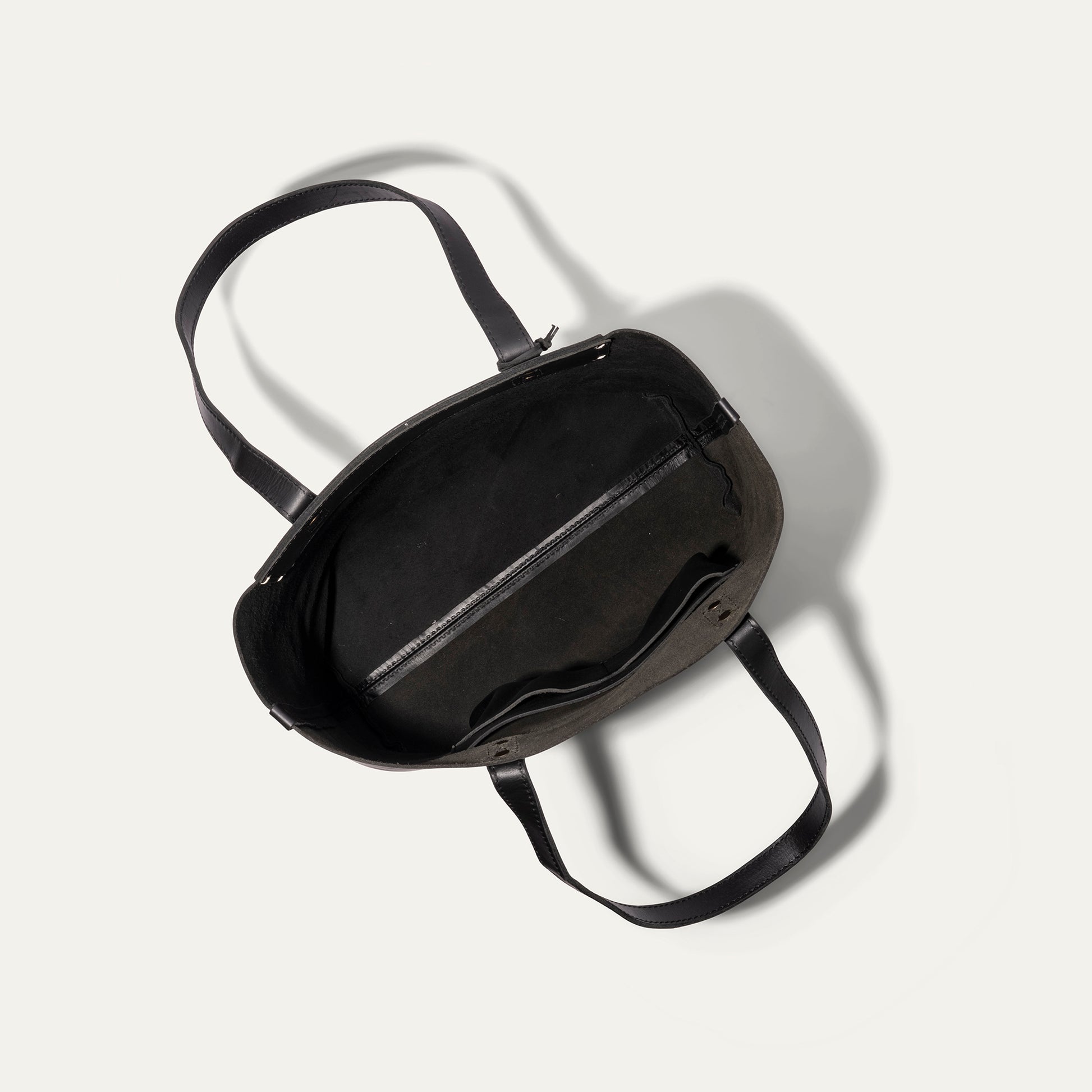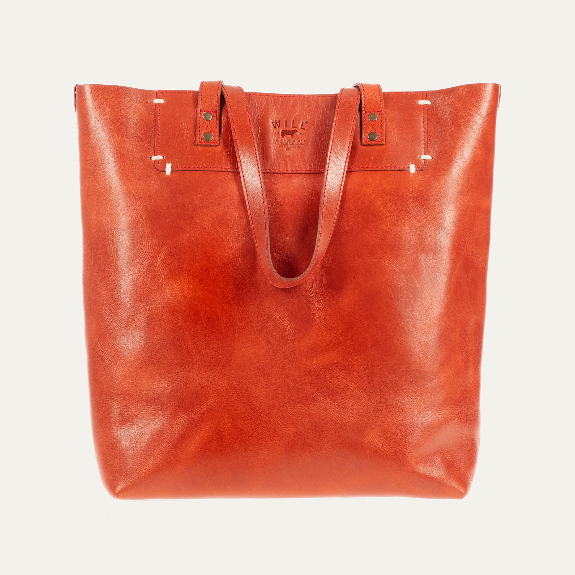 Our Simple Tote is handcrafted from full-grain, vegetable-tanned leather. Designed with the idea of showing the art of leathercraft, the Simple Collection features an unlined interior, which allows you to see how Will Leather Goods are truly built to last. A leather panel debossed with the Will Leather Goods logo adds structure, while hand-stitched, wax cord bar-tacks add an artisanal detail. The roomy interior features a leather triple pocket for organization of your phone, sunglasses, and keys. Dual steel rivets and box stitching secure the Simple Tote handles. We stand behind our product—guaranteed for life."