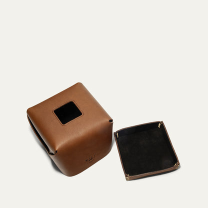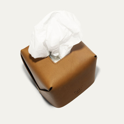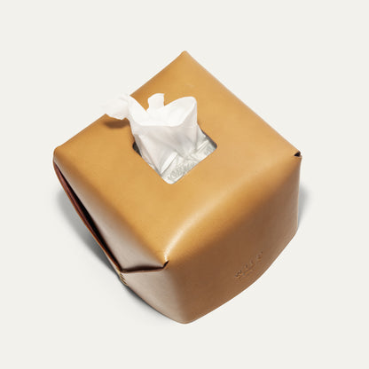 Redefine your décor with the sophistication of our all-leather tissue box that not only serves its functional purpose but also adds a stylish touch to your surroundings. The meticulous craftsmanship and thoughtful origami-style construction uses a single piece of leather, folded and stitched for a distinctive tissue cove that upgrades your tissues from the ordinary cardboard eyesore to functional décor. Ideal for your home, classroom, car, or office space, this unique piece seamlessly blends functionality with a touch of warmth and texture, thanks to the use of luxurious and environmentally friendly full grain vegetable tanned leather.