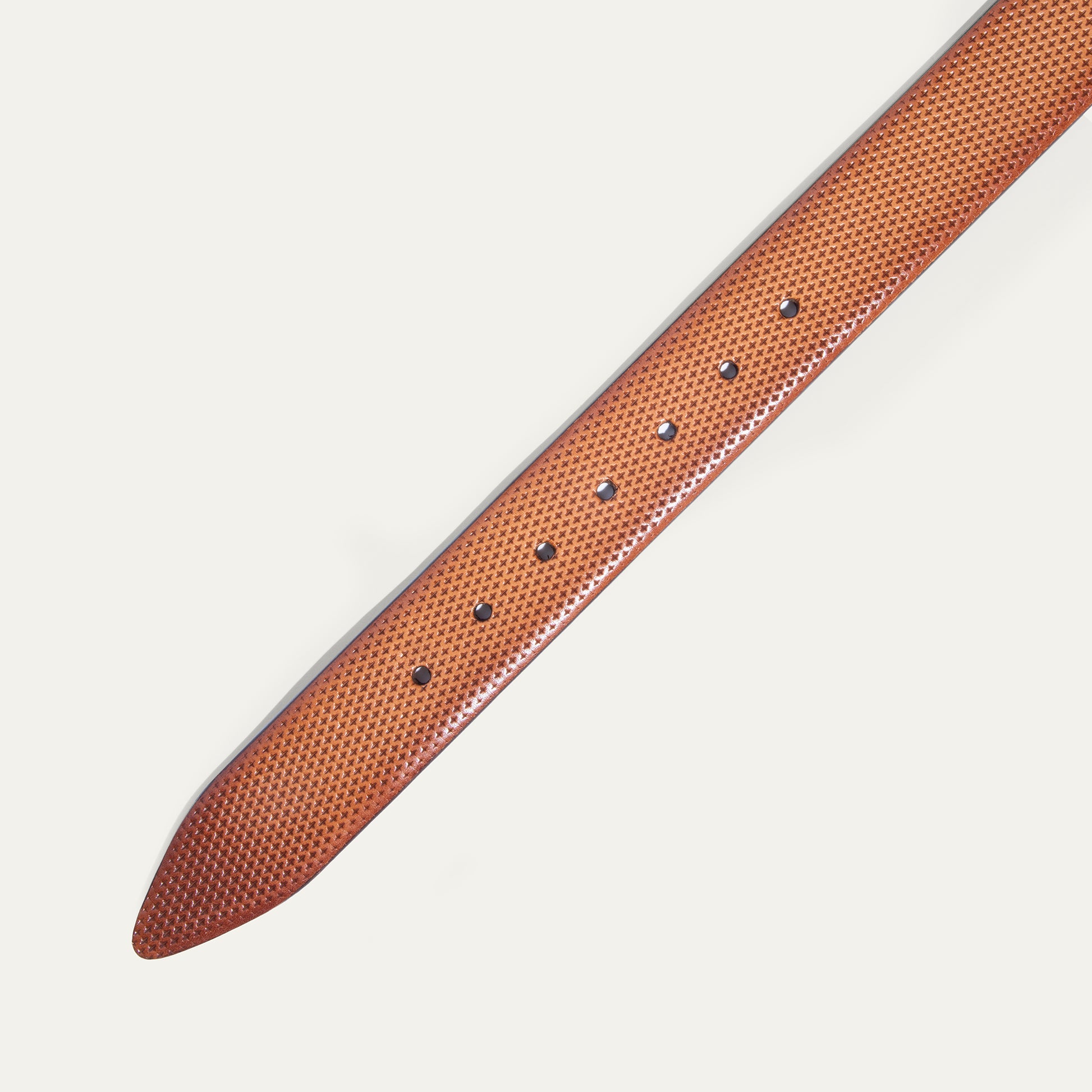 Our Star Perforated Belt is handcrafted with heavyweight, full-grain, vegetable-tanned leather. Our artisans hand-burnish the edges of the belt, which is laser-cut with a star motif. The steel-molded antiqued buckle is connected to the strap with our Cow icon engraved Chicago screws, allowing the buckle to be switched out for another 38-millimeter buckle of your choice. The Star Perforated Belt is built to last a lifetime. We stand behind our product—guaranteed for life.