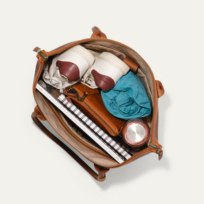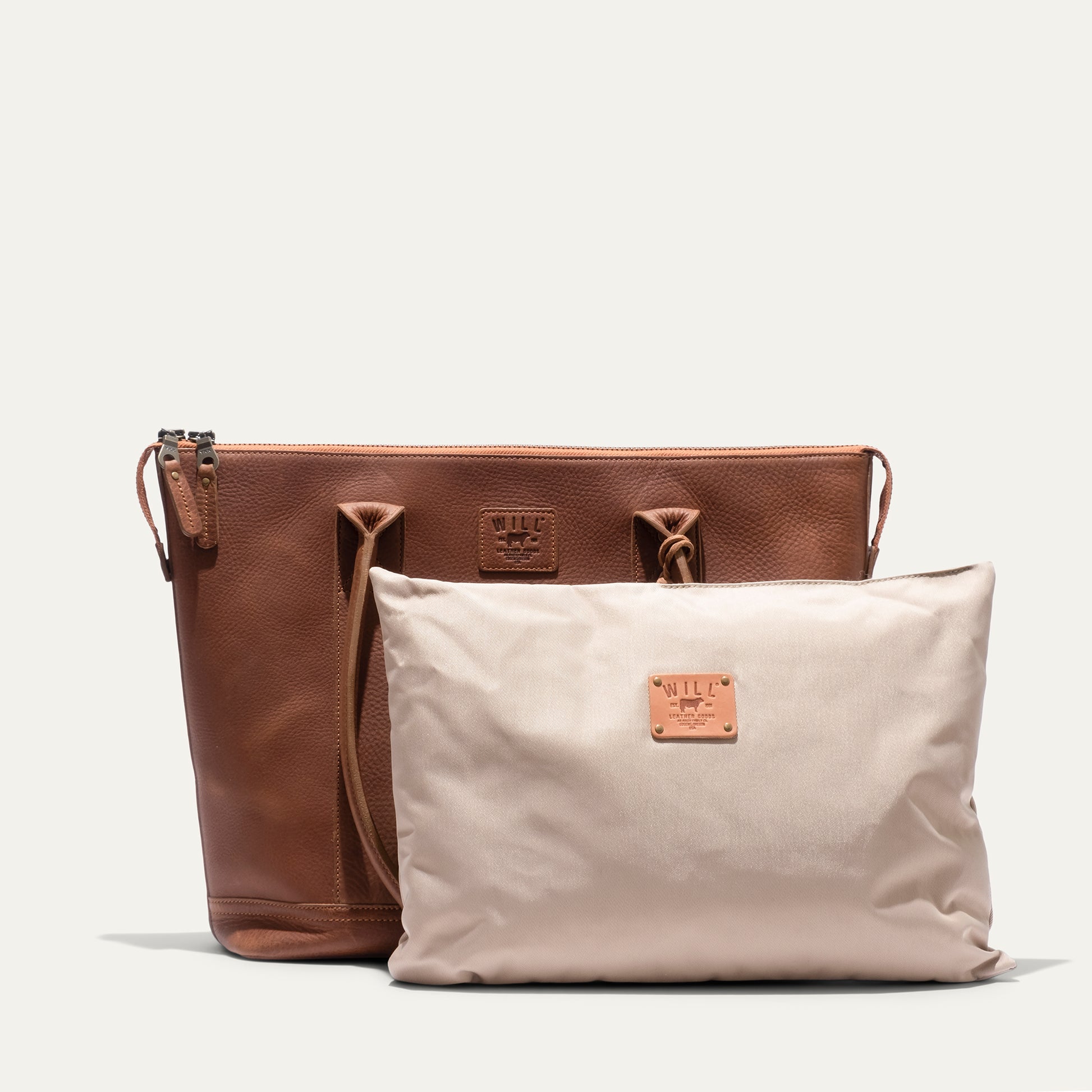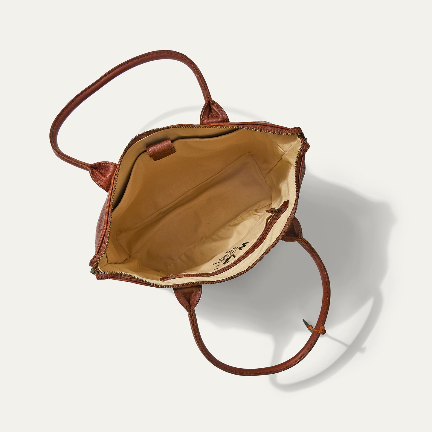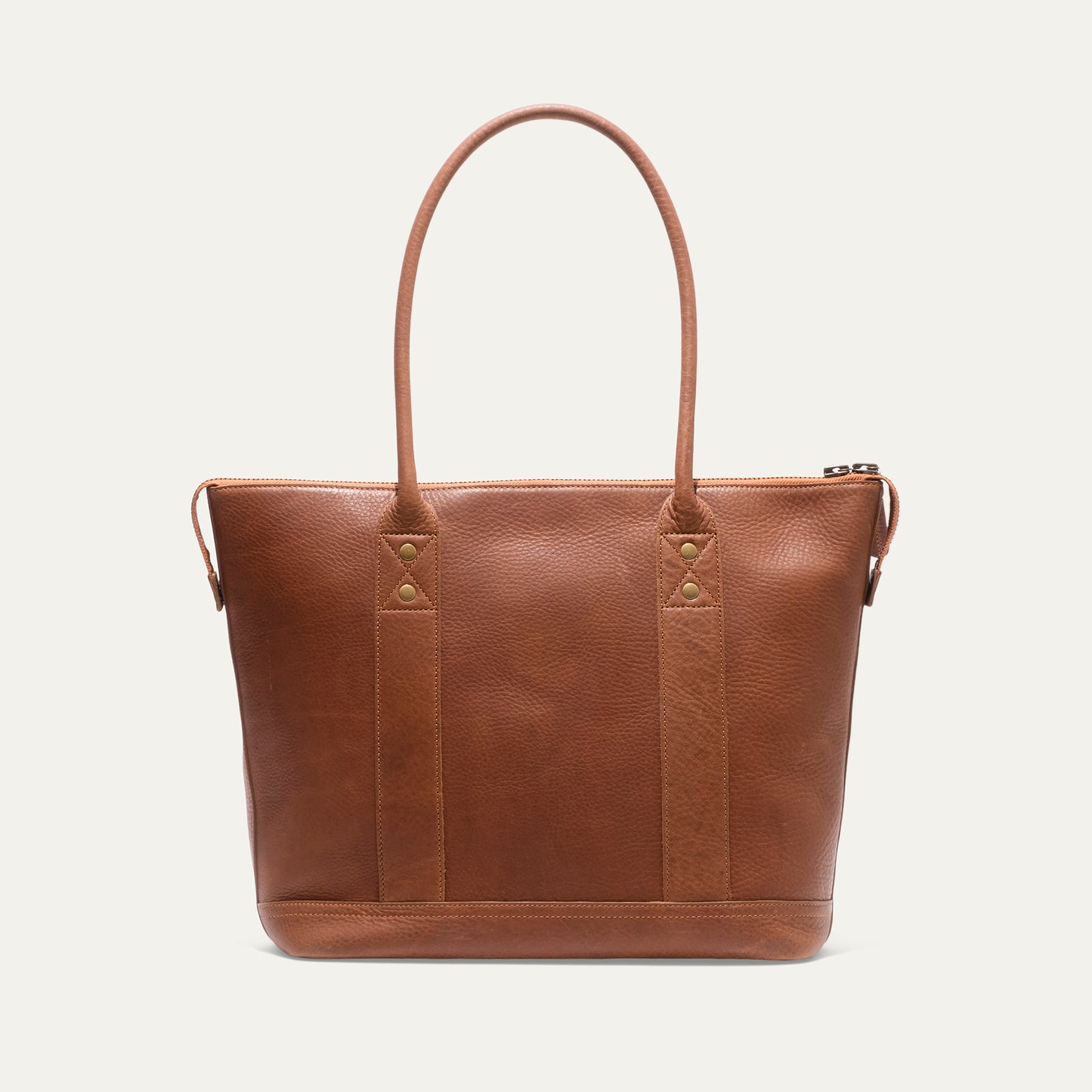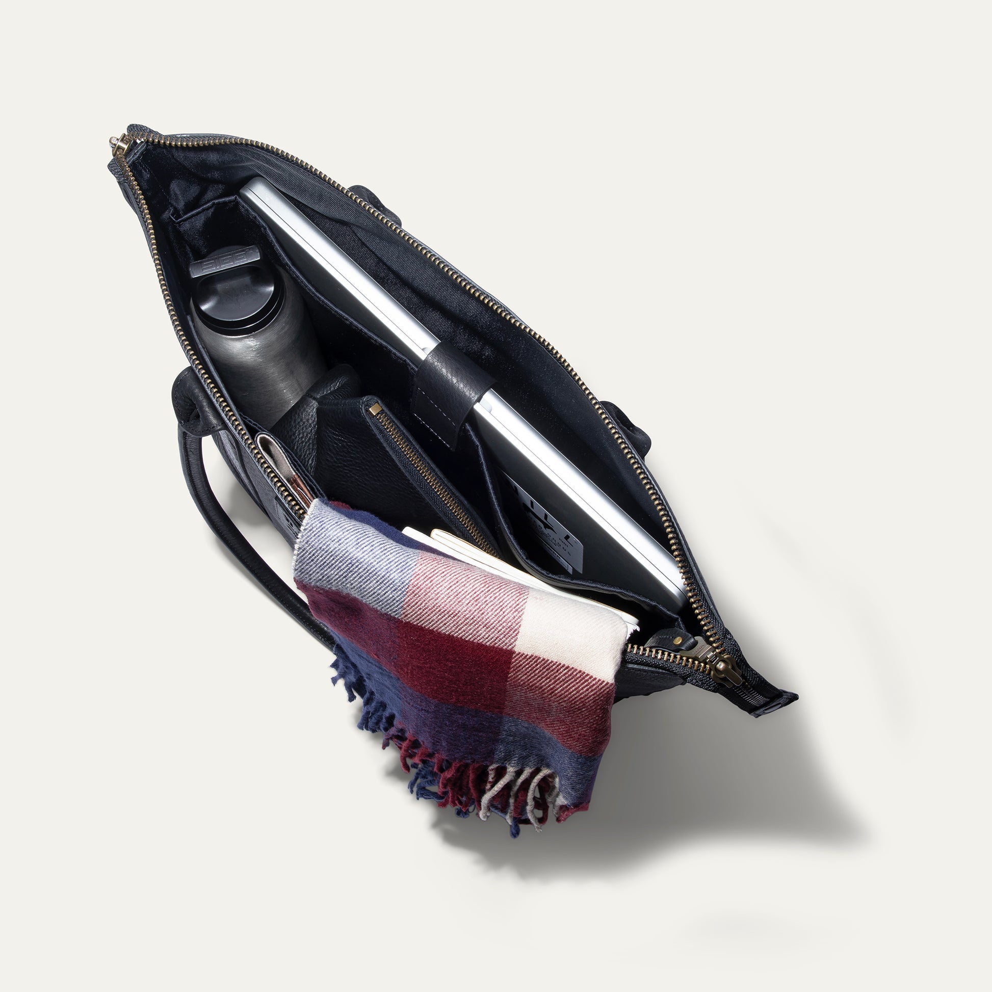 Our Twenty-Four Seven Leather Tote is handcrafted with full-grain, vegetable-tanned leather trim. The interior is lined with our signature plaid, featuring a padded compartment to hold up to a 17” laptop and a slip pocket for additional organization. Box-stitching and dual steel rivet reinforcement secure the rolled handles, which fit easily on the shoulder or in the hand. Your belongings are secured with a two-way brass YKK zipper, while a leather base protects against wear to the Twenty-Four Seven Leather Tote. We stand behind our product—guaranteed for life.