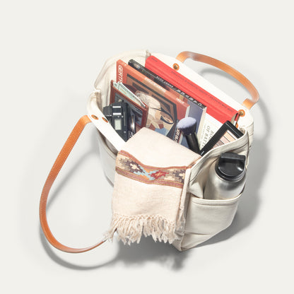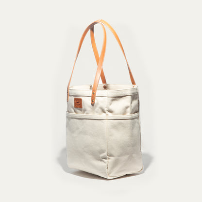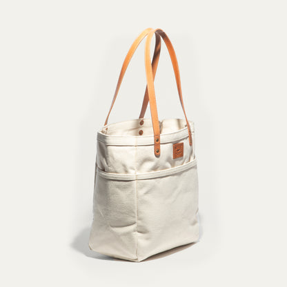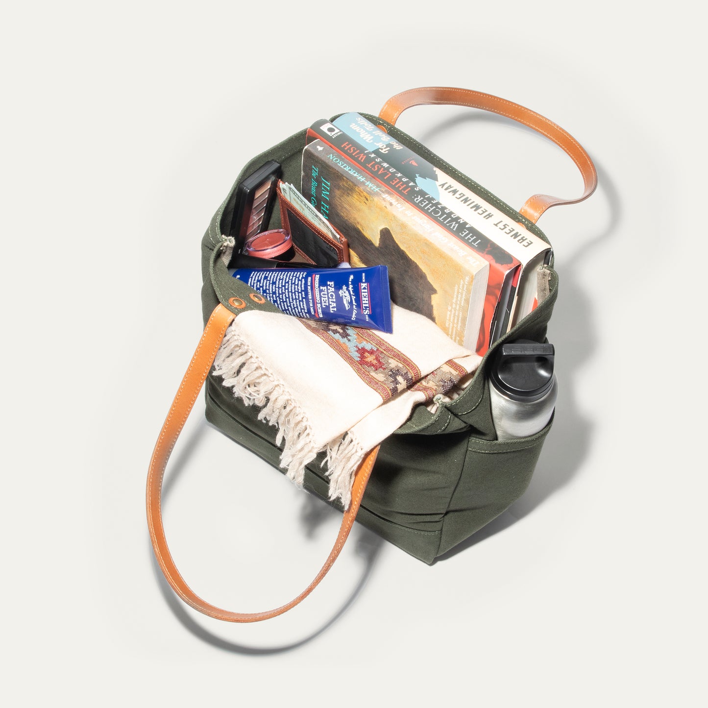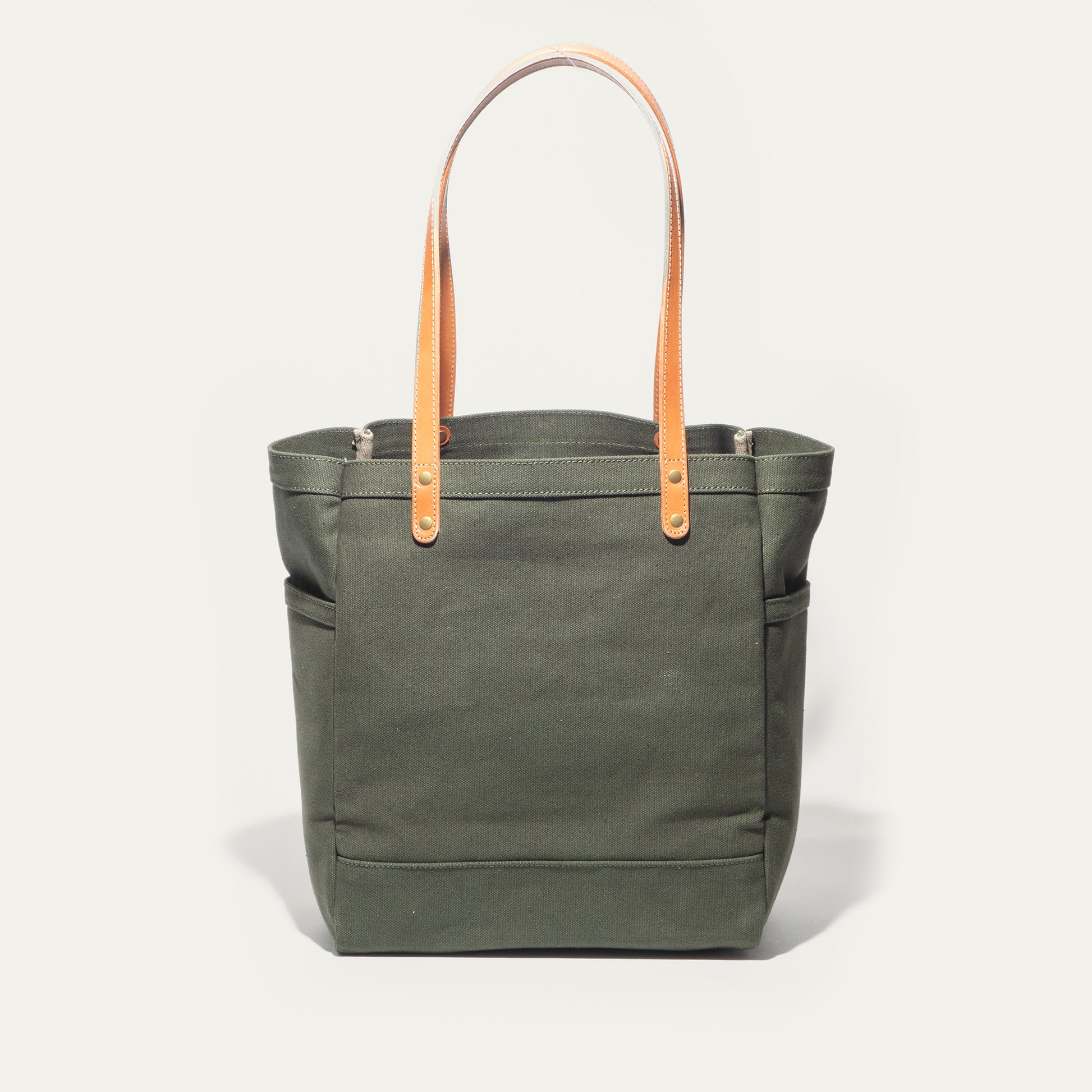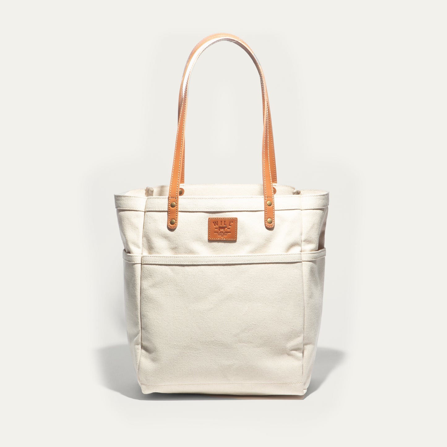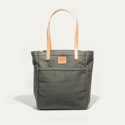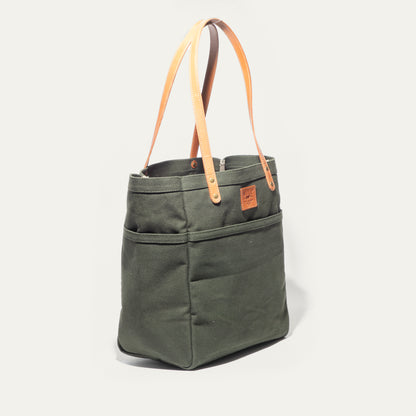 The Waxed Canvas Work Tote is handcrafted from industrial-grade 18-ounce 100% cotton, water-resistant waxed canvas, and full-grain, vegetable-tanned leather trim. Four exterior pockets organize your belongings, while the dual-rivet reinforced leather handles fit over the shoulder or in the hand. Industrial-grade nylon thread and cotton herringbone binding ensure the durability of the Waxed Canvas Work Tote. We stand behind our product—guaranteed for life.