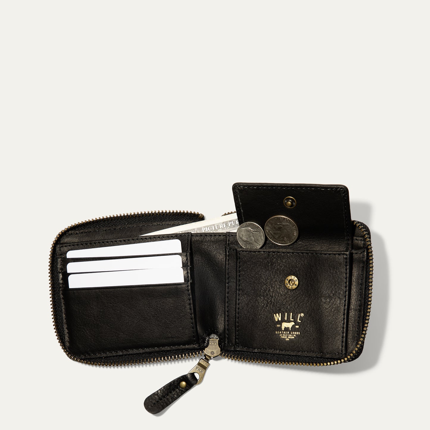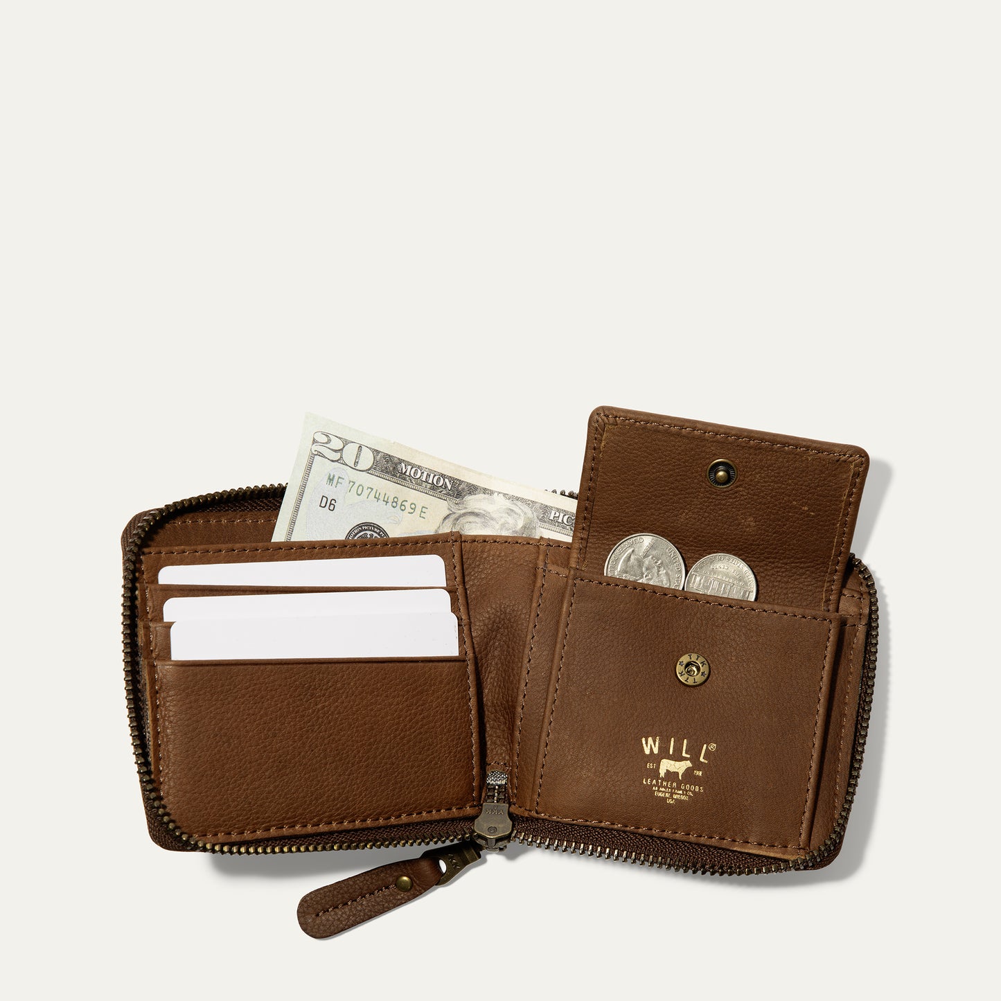 The Zip Around French Wallet is handcrafted with full-grain vegetable-tanned leather. Inside are three card slots, a sleeve for cash, and a coin pouch with a steel snap closure. Secure and easy access with a brass YKK zipper, the Zip Around French Wallet is sewn with industrial-grade nylon thread and nine stitches per inch to ensure its durability. We stand behind our product—guaranteed for life.
