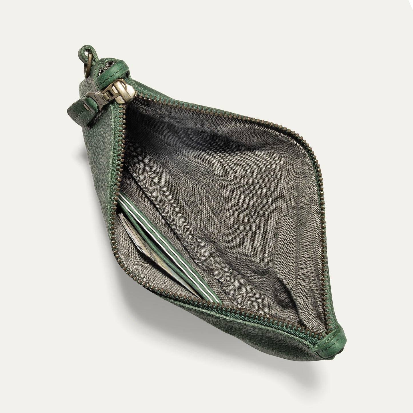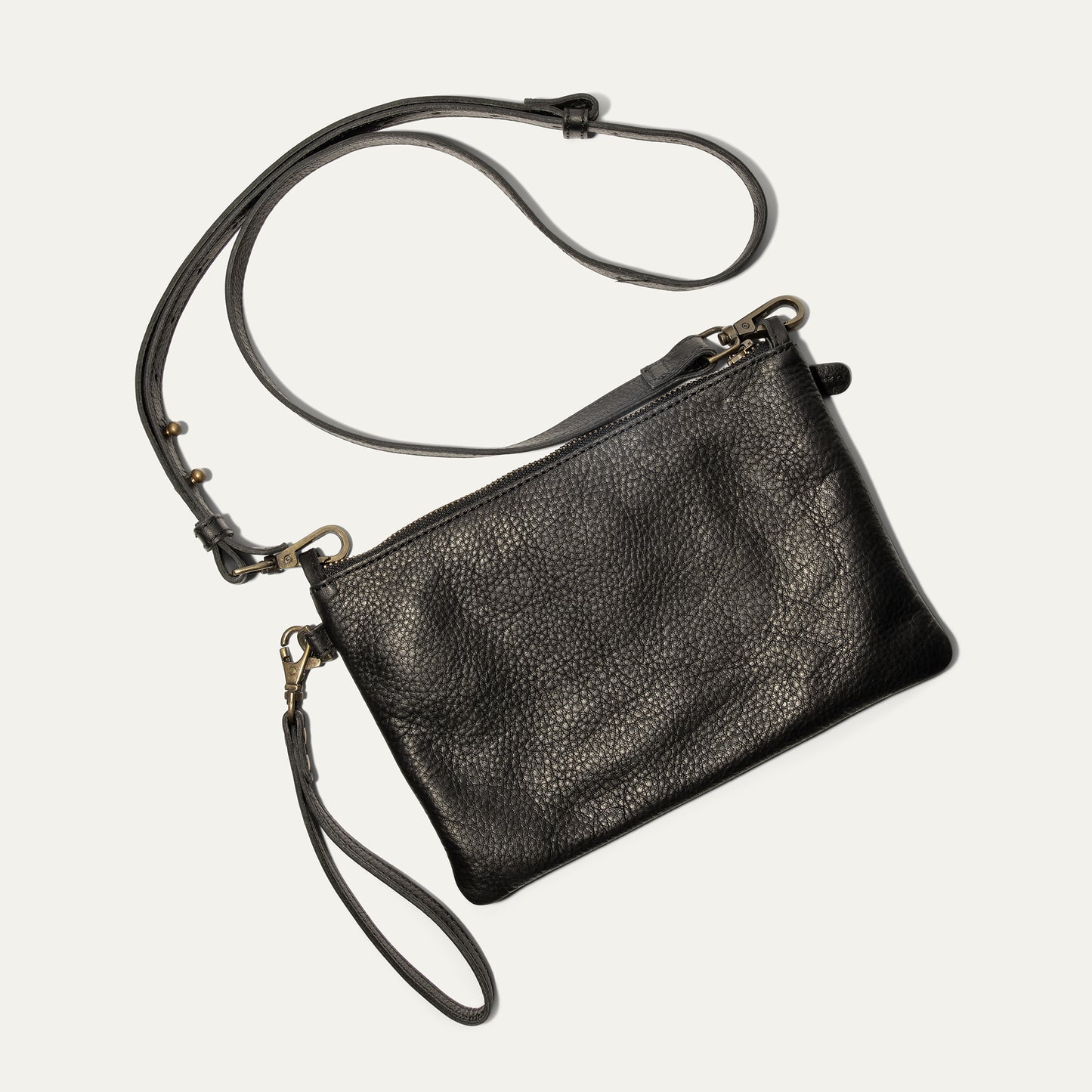 Our Convertible Crossbody Zip Pouch is handcrafted from full-grain, vegetable-tanned leather. Designed with versatility in mind, the Pouch can be worn on the shoulder or across the body with the highly adjustable/detachable leather strap or on the wrist with its detachable leather wristlet strap. The interior is lined in 100% cotton chambray and contains three leather credit card slots to keep you organized. The Convertible Crossbody Zip Pouch is built with a brass YKK zipper and sewn with industrial-grade heavy-gauge nylon thread. We stand behind our product—guaranteed for life.
