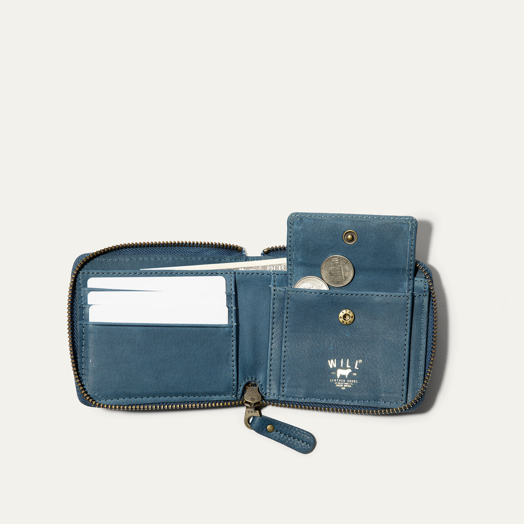 The Zip Around French Wallet is handcrafted with full-grain vegetable-tanned leather. Inside are three card slots, a sleeve for cash, and a coin pouch with a steel snap closure. Secure and easy access with a brass YKK zipper, the Zip Around French Wallet is sewn with industrial-grade nylon thread and nine stitches per inch to ensure its durability. We stand behind our product—guaranteed for life.